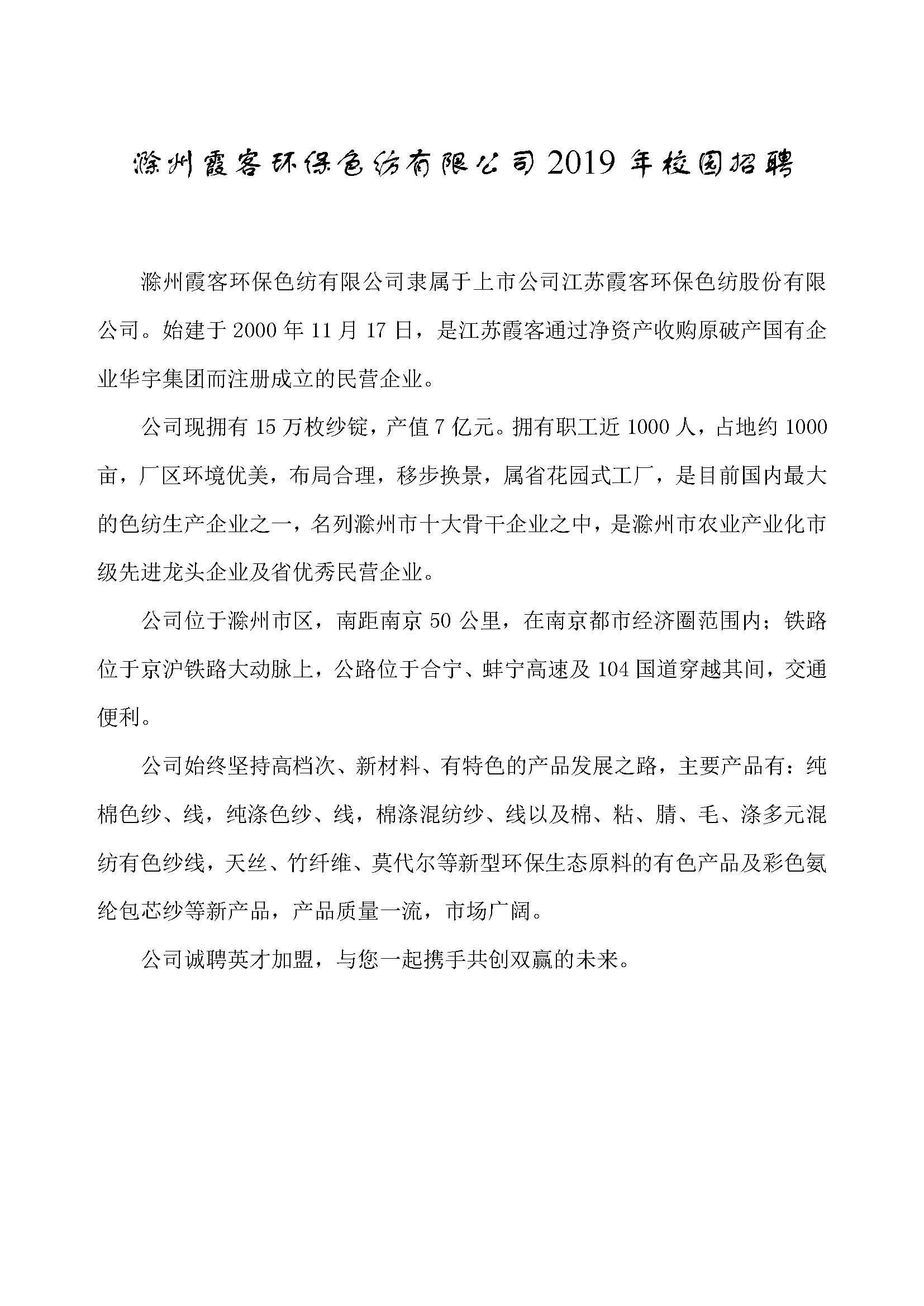 【2019届】15号 滁州霞客环保色纺有限公司(113专场)