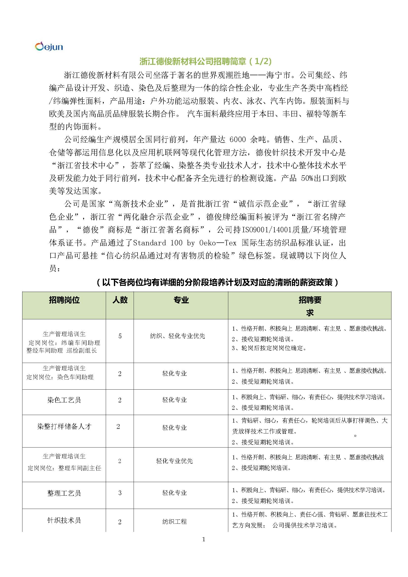 【2019届】20号 浙江德俊新材料有限公司(113专场)