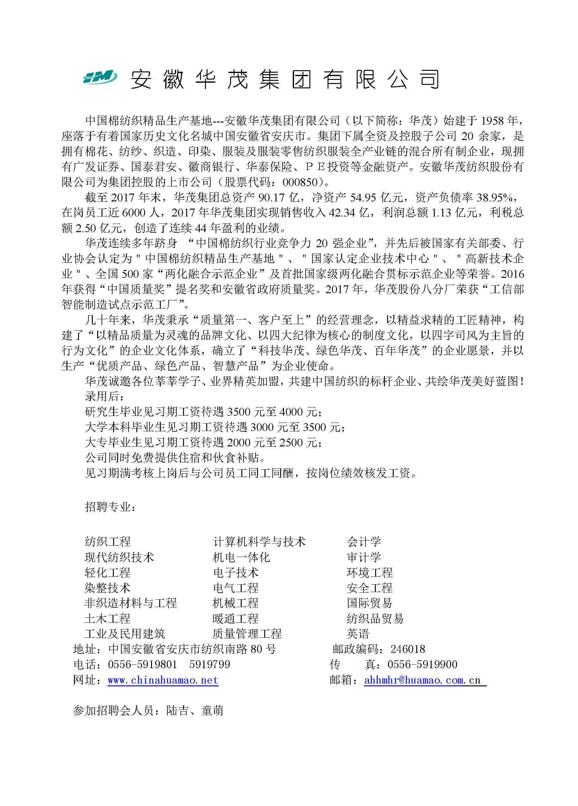 【2019届】24号 安徽华茂集团有限公司(113专场)