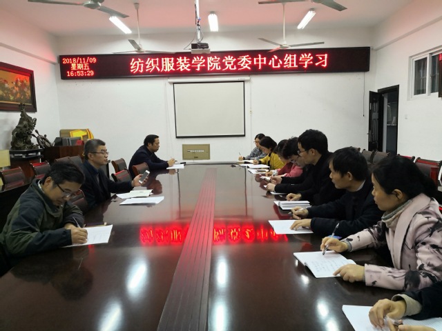 11月9号,纺织服装学院党委中心组开展理论学习,专题学习了新修订的《中国共产党纪律处分条例》。院党委书记纪天新主持学习会,中心组全体成员参加学习讨论。