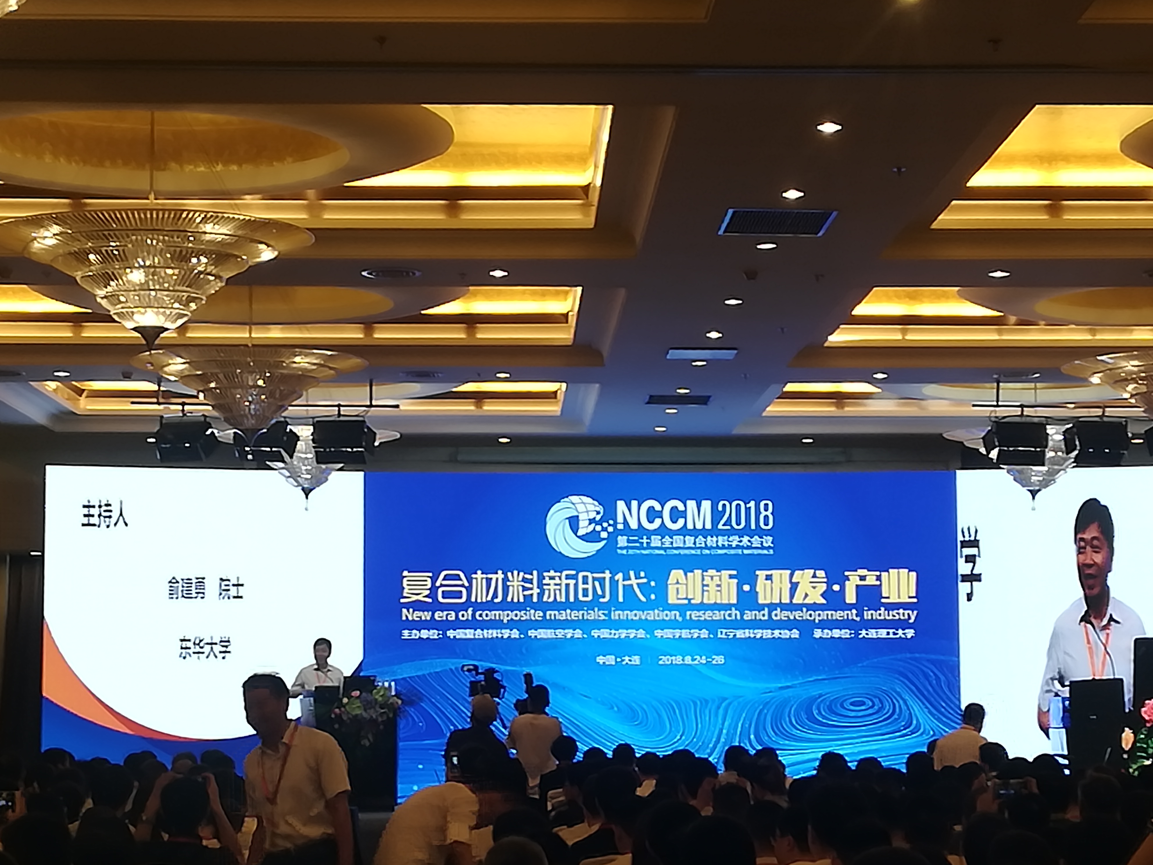 8月24-26日,第二十届全国复合材料学术会议(简称NCCM-20)在辽宁省大连市海创科技交流中心举办,纺服学院纺织工程系杨莉老师参加了此次学术会议。中国工程院院士杜善义、陈祥宝、俞建勇、侯晓、蹇锡高,辽宁省科协党组书记、副主席张春英,大连理工大学副校长贾振元等出席了开幕式。开幕式由蹇锡高院士主持,来自全国500余位复合材料科技工作者和工业界代表参加了会议。全国复合材料学术会议(National Conference on Composite Materials)是由中国复合材料学会、中国航空学会、中国宇航学会、中国力学学会联合举办,是目前国内历史最悠久的复合材料学术会议。