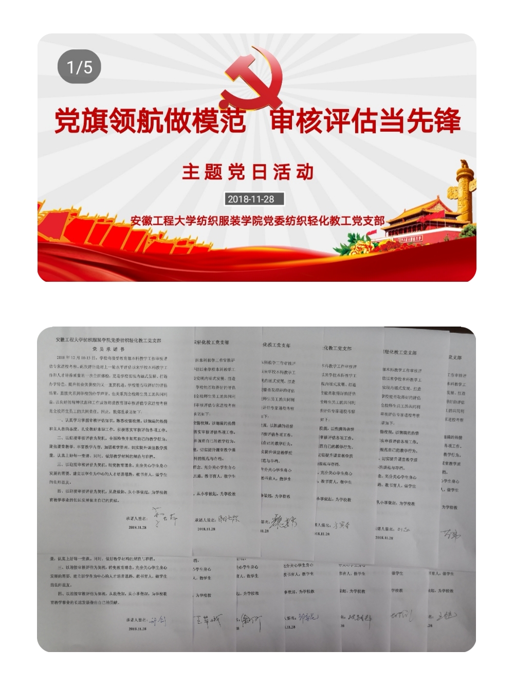 本次主题党日活动,在学院党政的指导下,纺织轻化教工党支部经过精心设计,围绕审核评估这一主题,聚焦课堂教学这一重点内容,通过再动员、集中学习、党员承诺以及主题研讨和实践,活动内容详实,贴近教学工作实际,不走过场,以党建促发展,取得了显著的活动成效。