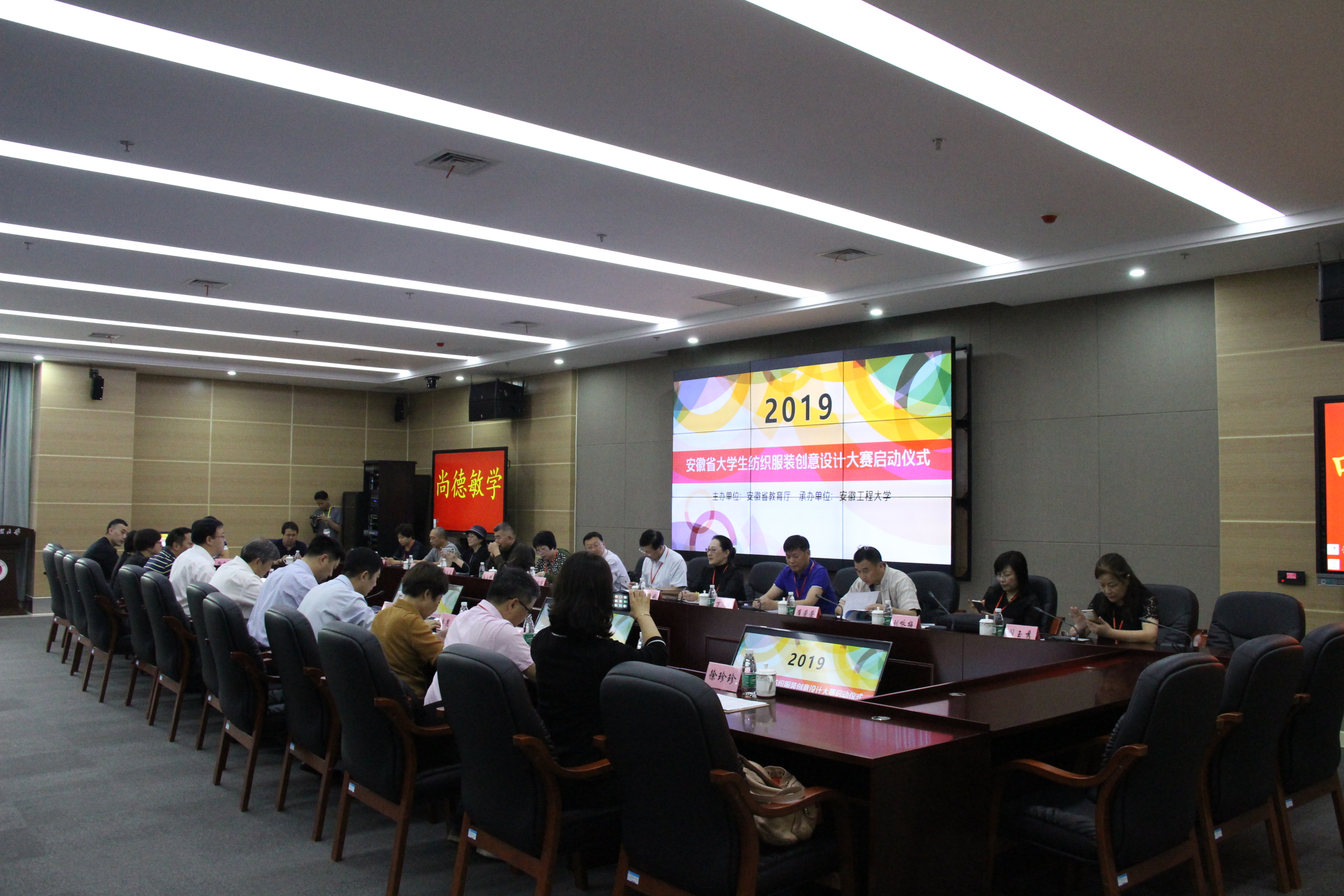 5月25日,由安徽省教育厅主办,RayBetApp官网下载 承办的2019年安徽省大学生纺织服装创意设计大赛评审工作在RayBetApp官网下载 顺利举行。省教育厅高教处朱永国副处长莅临比赛现场指导赛事工作,RayBetApp官网下载 副书记、副校长王绍武、副校长叶常林出席了启动仪式并讲话。来自东华大学、苏州大学、江南大学、西安工程大学、浙江理工大学、南京艺术学院、劲霸男装等9所高校、知名企业共15名专家担任大赛评委。