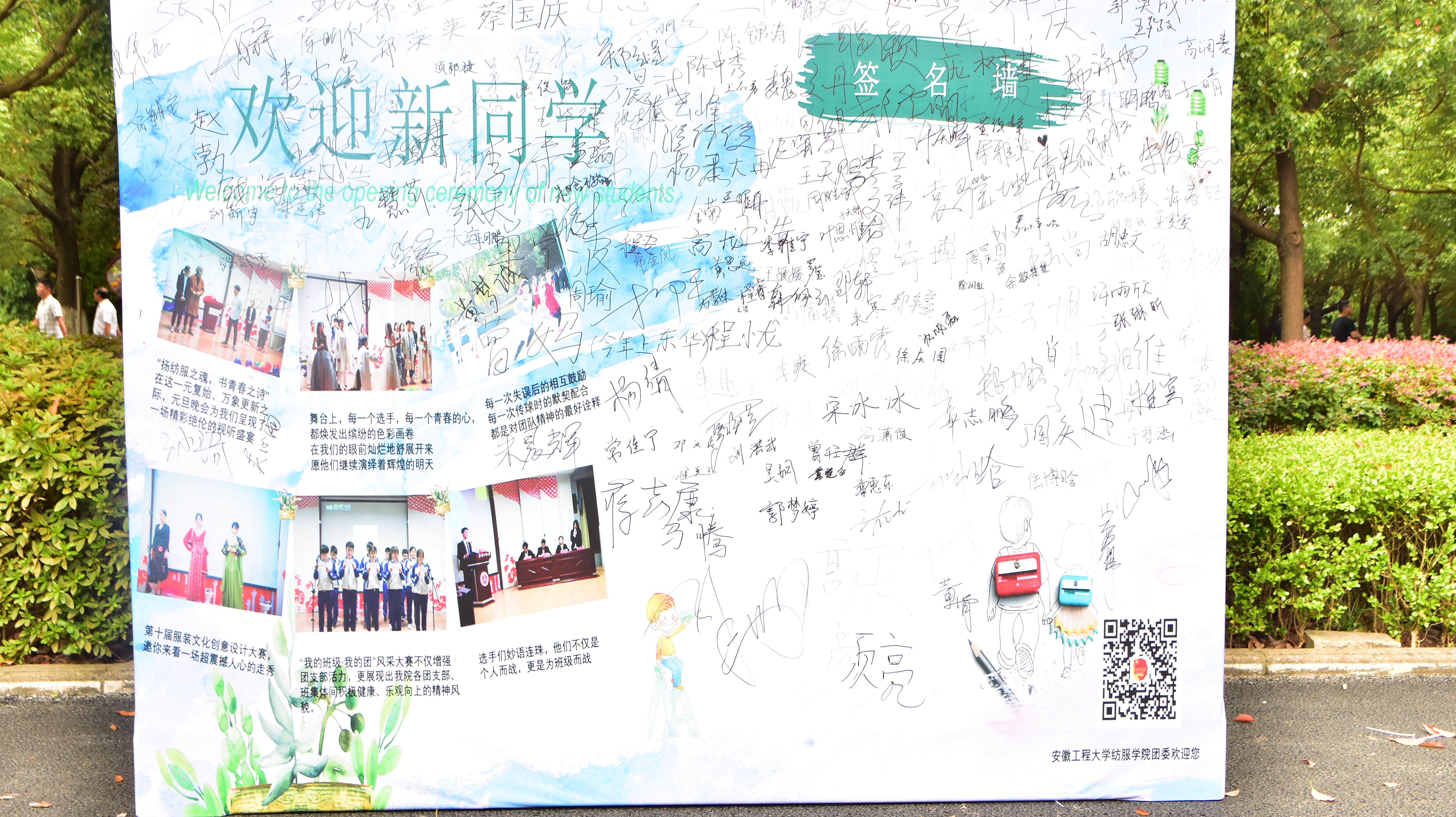 经过三天的时间,精美的新生签名墙上多了许多或工工整整或龙飞凤舞的名字,这代表着新一代各式各样风格、五颜六色风采的鲜活血液正注入纺织服装学院大家庭。“好奇”、“憧憬”、“期待”是新生眼睛里散放的光芒,后续的新生入学教育将指导这些萌新如何度过一个精彩的大学生活。