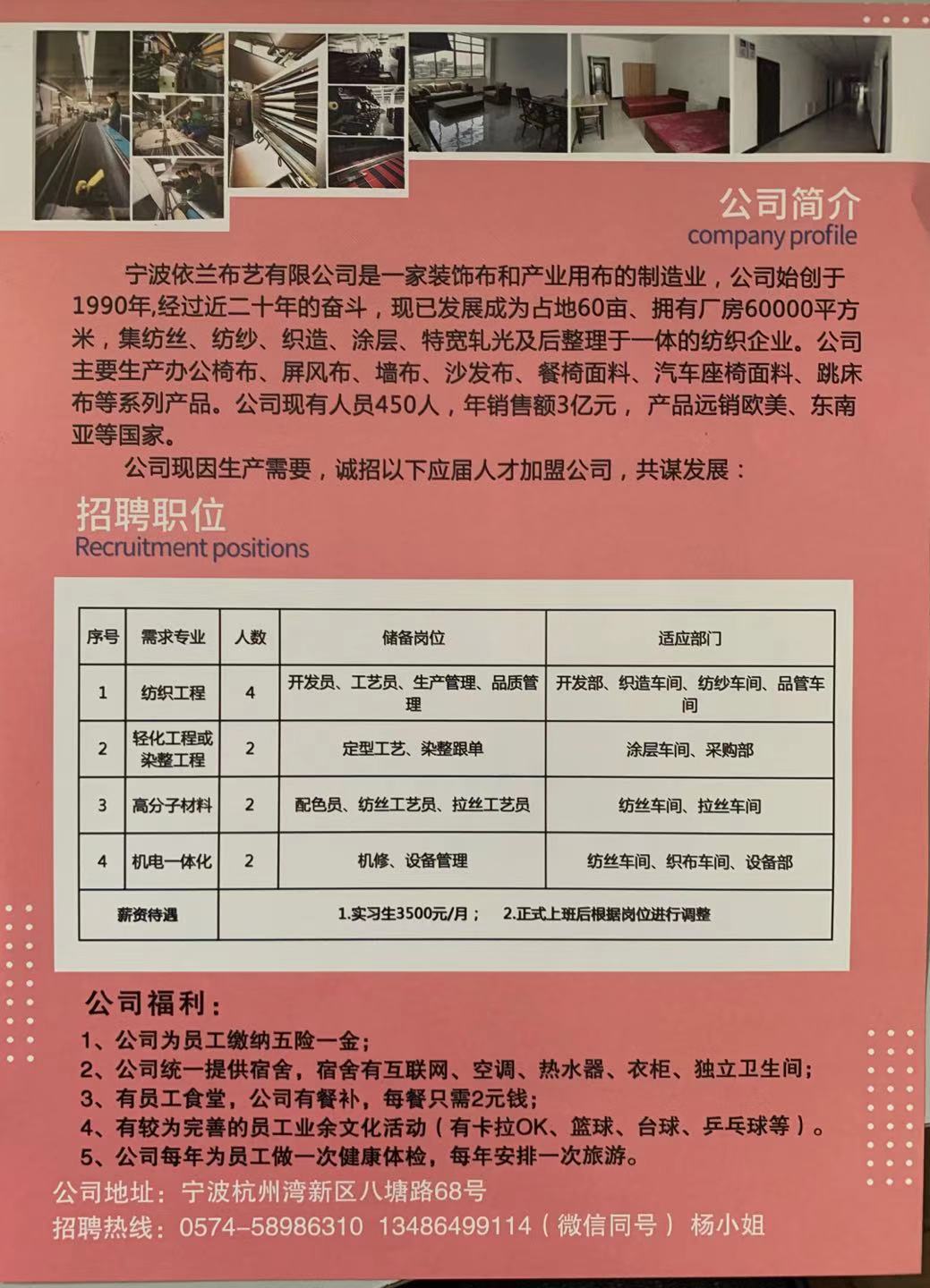 【2020届】23号 宁波依兰布艺有限公司(11月2日专场)