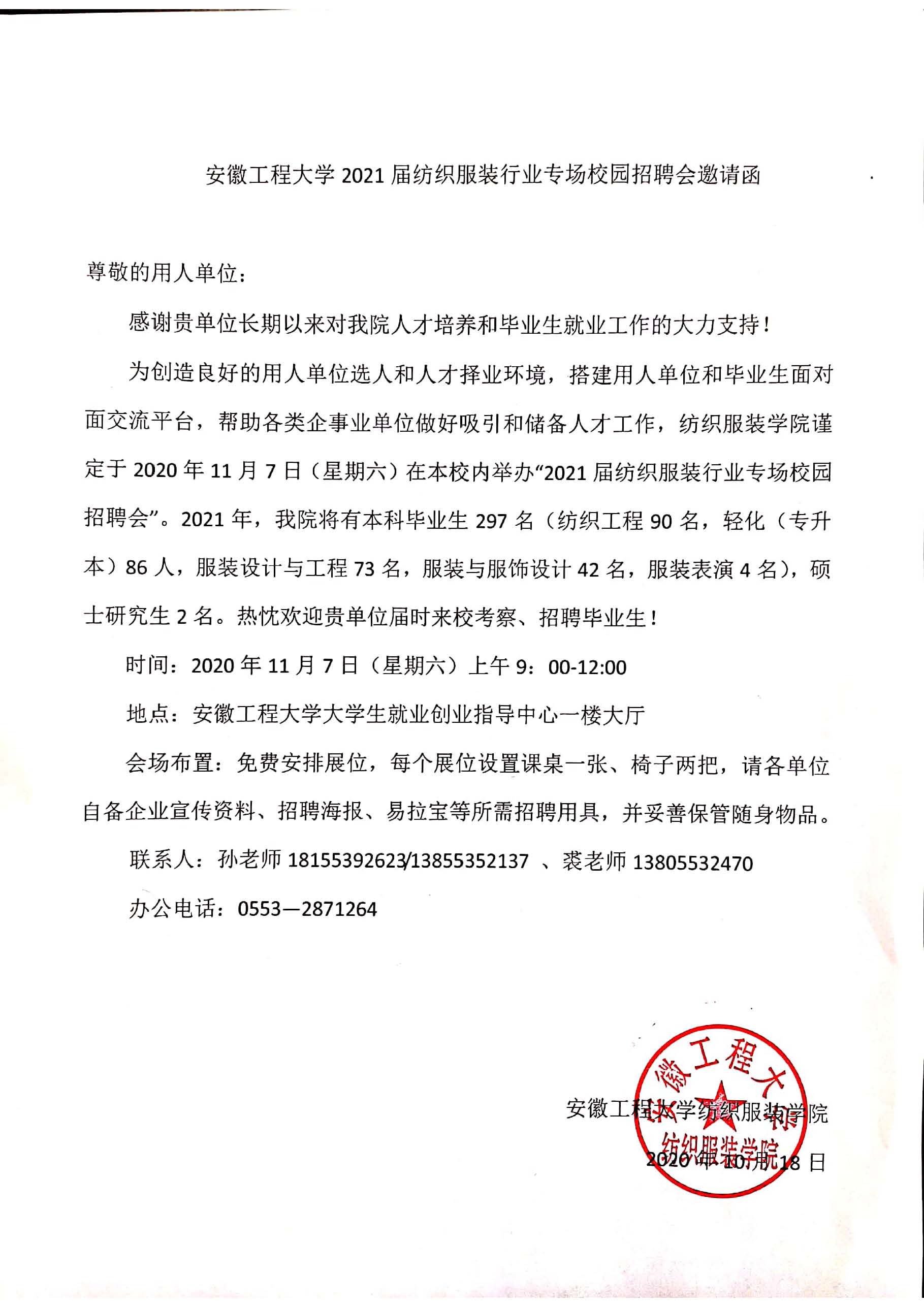 RayBetApp官网下载2021届纺织服装行业专场校园招聘会邀请函