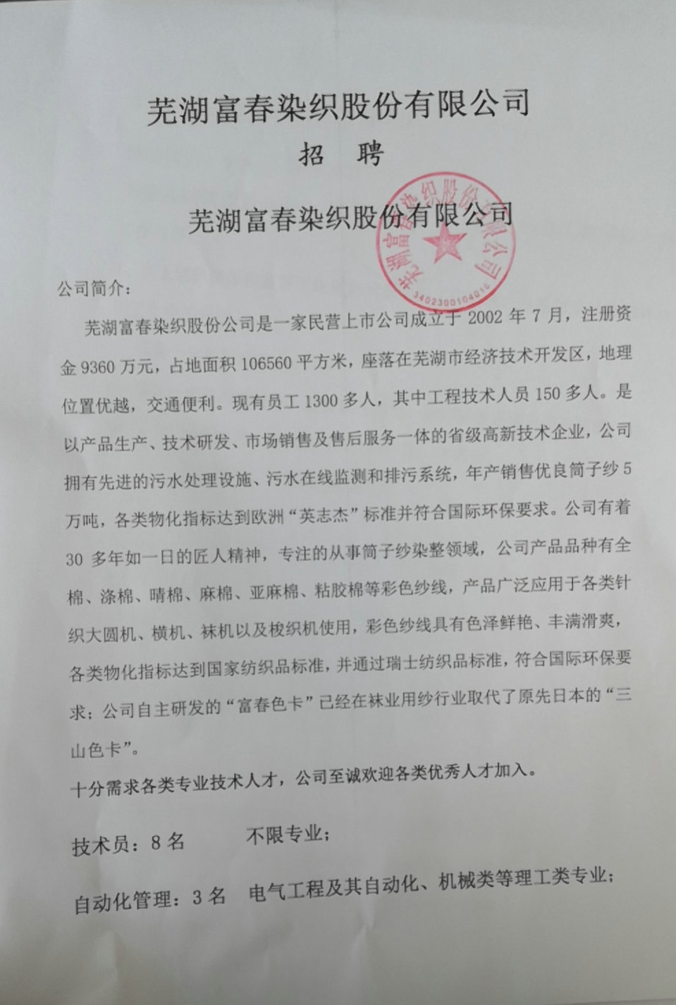 【11.7专场】【2021届】 30号 芜湖富春染织股份有限公司