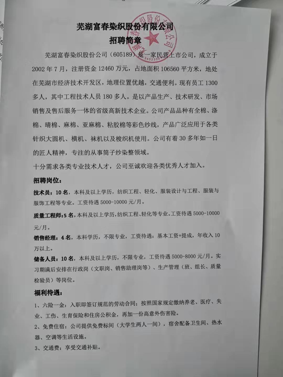 【2022届专场】29号 芜湖富春染织股份有限公司