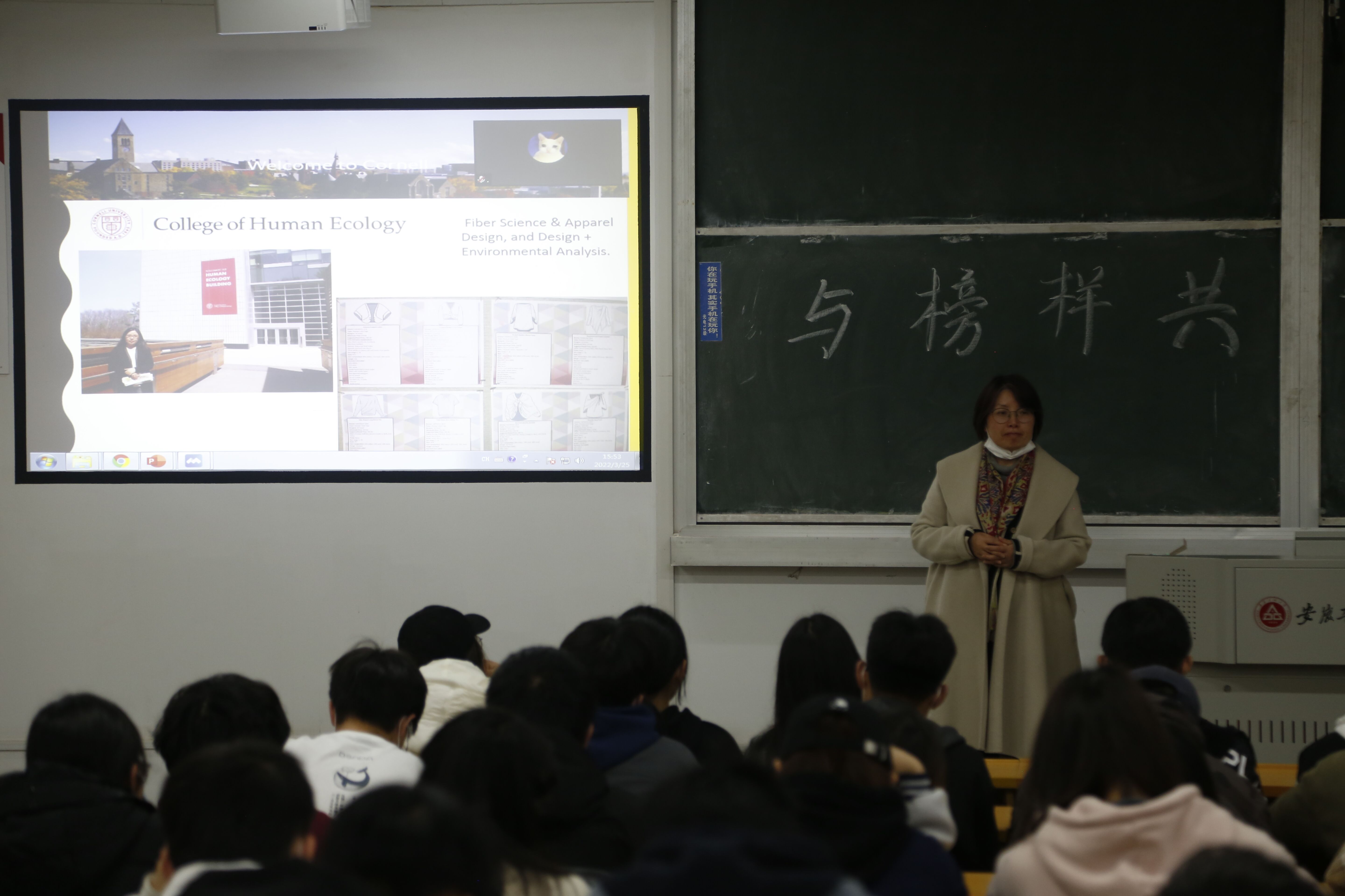 最后,袁惠芬副院长做了题为“服装设计与工程专业再认识”的报告,补充了部分优秀校友的成功案例,希望大家向优秀校友学习,尽早树立明确的目标,合理规划好大学的学习生活,努力成为创新赋能型人才。