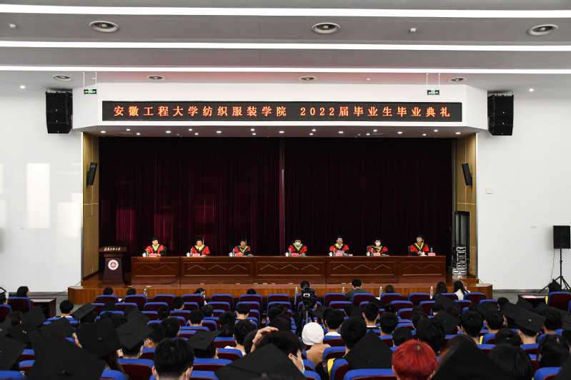 6月1日,纺织服装学院在图书馆五楼报告厅举行2022届本科生毕业典礼。学院党政领导,党支部书记,各系部主任、副主任,全体辅导员及320名2022届毕业生参加,典礼由学院党委副书记梁雪松主持。