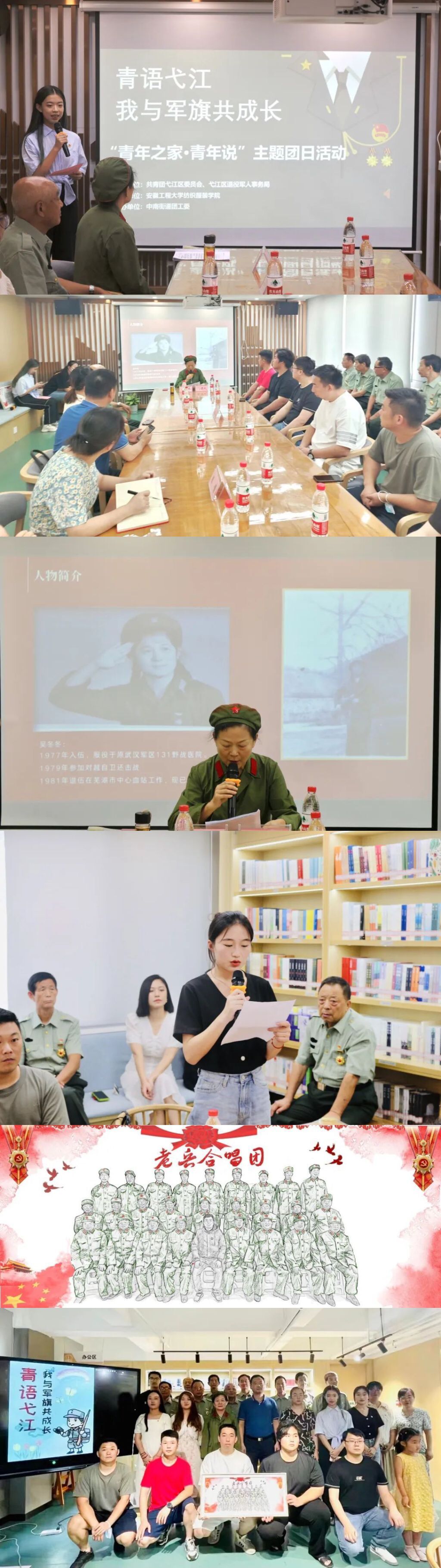 7月29日下午,纺织服装学院团委和弋江区在弋江南书苑共同举行“我与军旗共成长”为主题的主题团日活动,弋江区区属各街道的青年退役军人代表、弋江区老兵合唱团的老兵代表、弋江区退役军人事务局、芜湖市爱无疆社会服务中心工作人员和纺织服装学院团委负责人参加活动,本次团日活动由纺织214班陈焯琳主持。