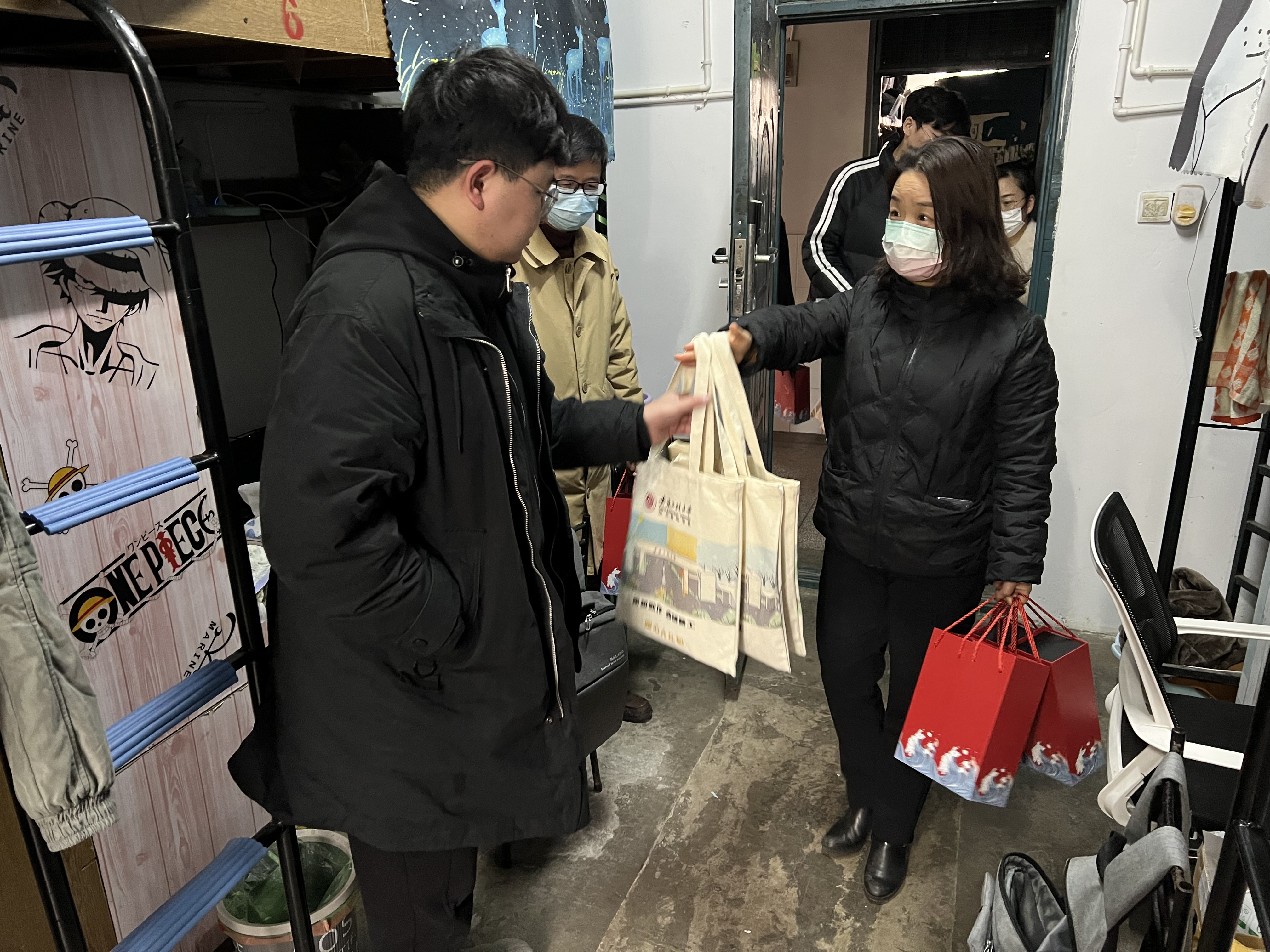 12月5日下午,纺织服装学院赴学生宿舍开展2023届毕业生慰问活动。学院党委副书记(主持工作)徐珍珍、学院院长李长龙、学院党委副书记梁雪松、团委负责人和毕业班辅导员参加活动。