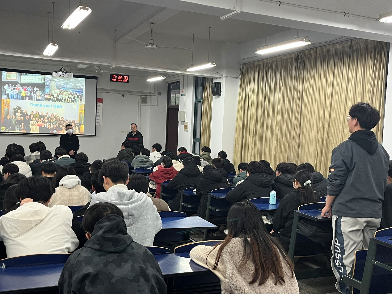第三阶段,苏州大学博士生导师李刚教授应邀进行了专业宣讲。他通过对生物医用纺织品在国内外新性技术中的应用,指出纺织领域也是一种具有高科技性、创新性的学科。接着,他展示了学生团队获得2022年互联网+创新创业大赛金奖等一系列成绩。他还从“学长”的角度介绍了纺织工程专业未来美好前景。交流阶段气氛热烈,他热情地为同学们解答困惑,让大家对纺织工程专业有了更深入、更清晰的认识,同学们纷纷表示收获颇丰。