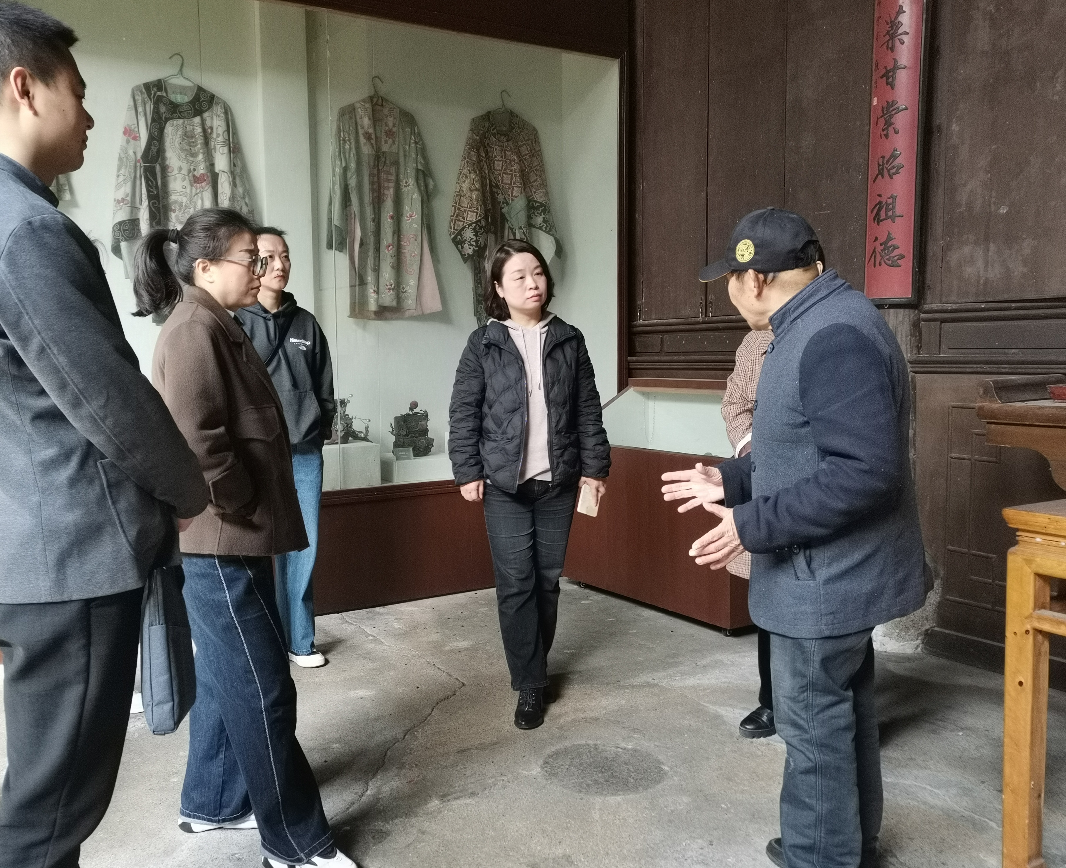 3月27日,纺织服装学院党委副书记(主持工作)徐珍珍及相关领域教师团队一行六人赴绩溪县伏岭镇,对国家级非遗项目“徽剧”戏服的保存现状开展实地调研。