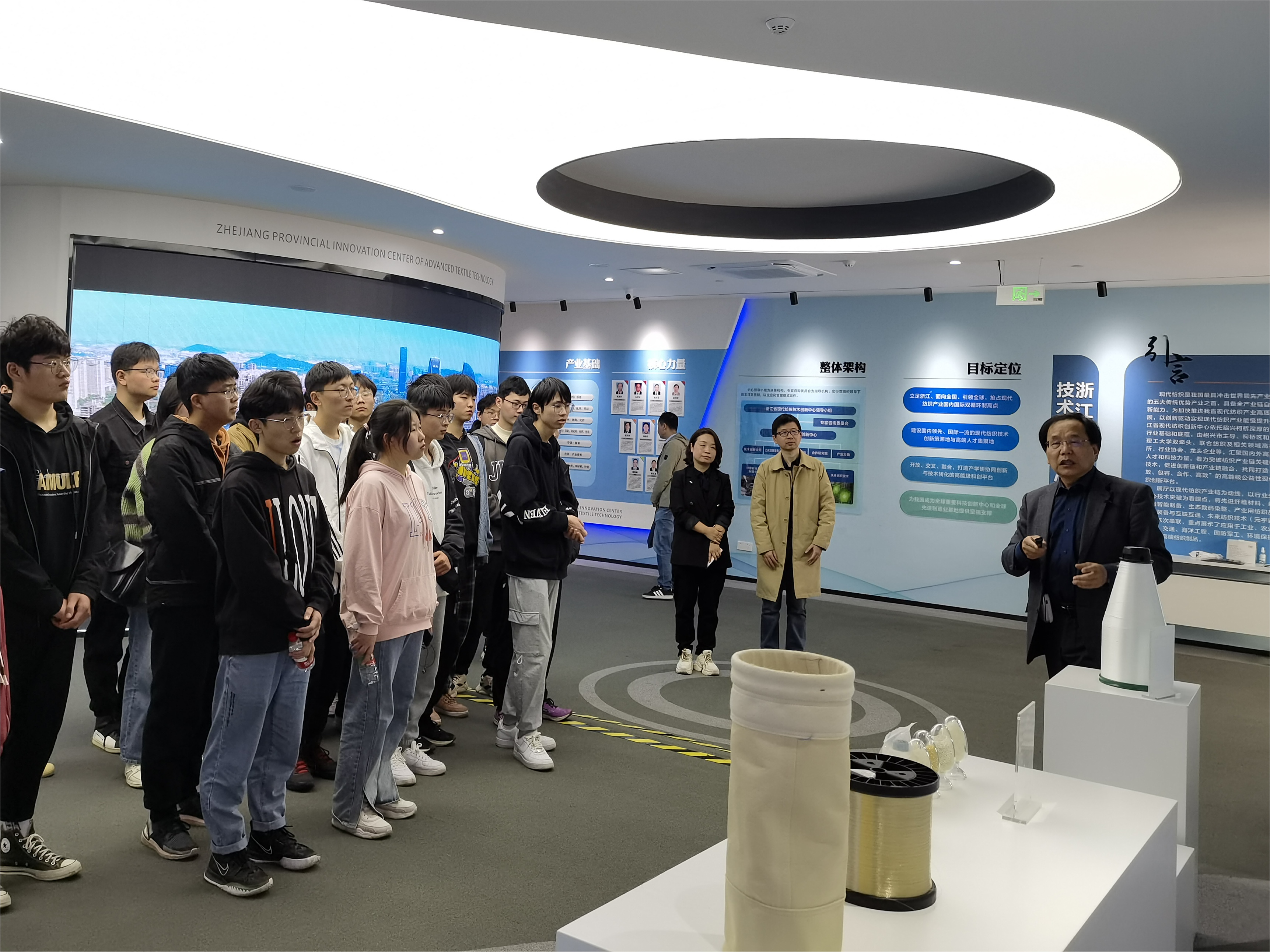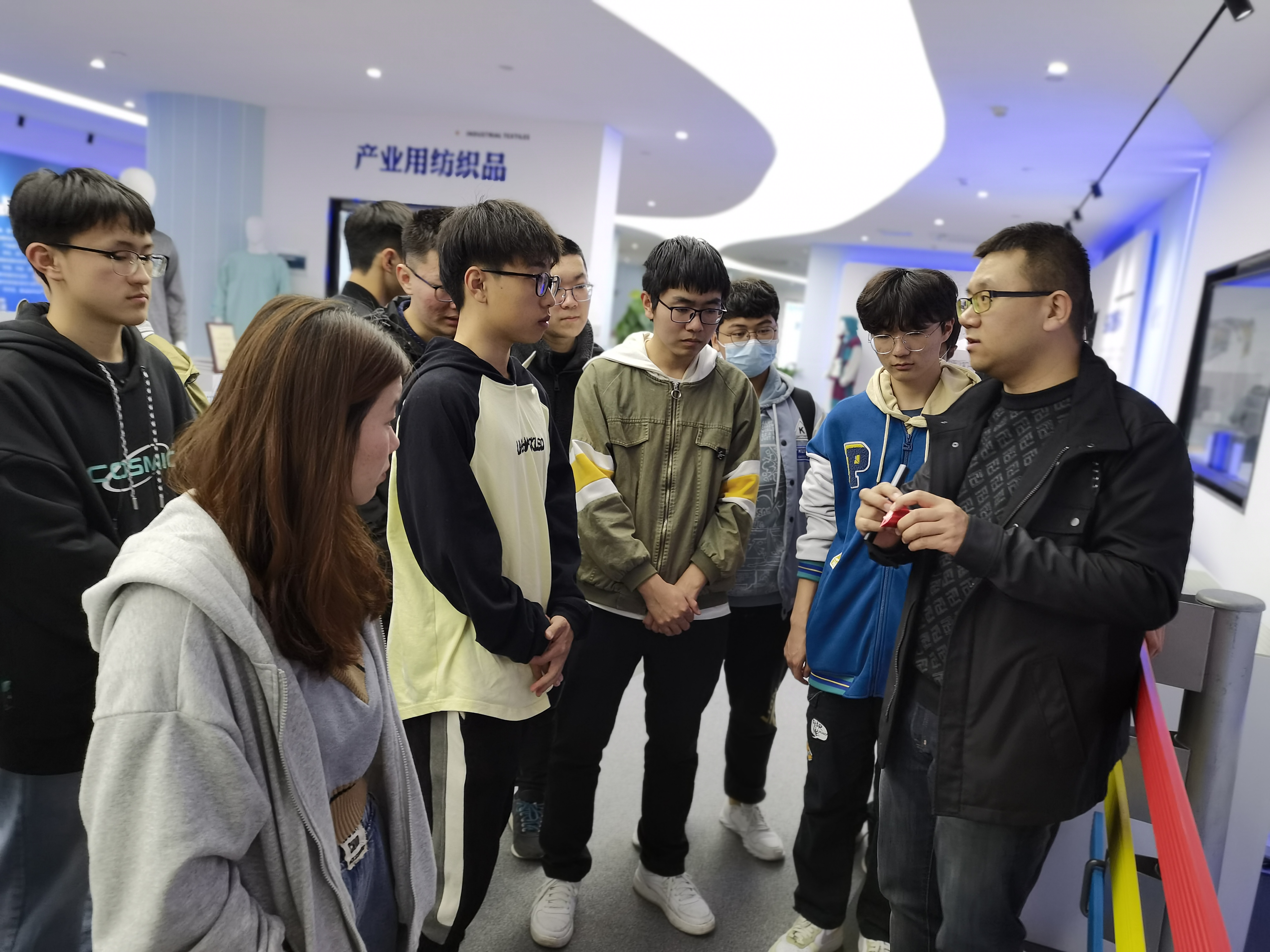 活动首站来到浙江现代纺织技术创新中心,在中心常务副主任、我校特聘教授倪庆清的带领下,师生实地参观中心实验室和展厅,了解了高性能纤维、高端纺织与智能制造、先进复合材料、未来纺织技术等现代纺织的发展方向,并参与体验了智能换衣、功能纺织品的无穷奇妙。在广东德美柯桥分公司,师生们参观了公司CNS实验室,直观地了解了纺织印染行业产品开发、前沿技术和最新应用情况。