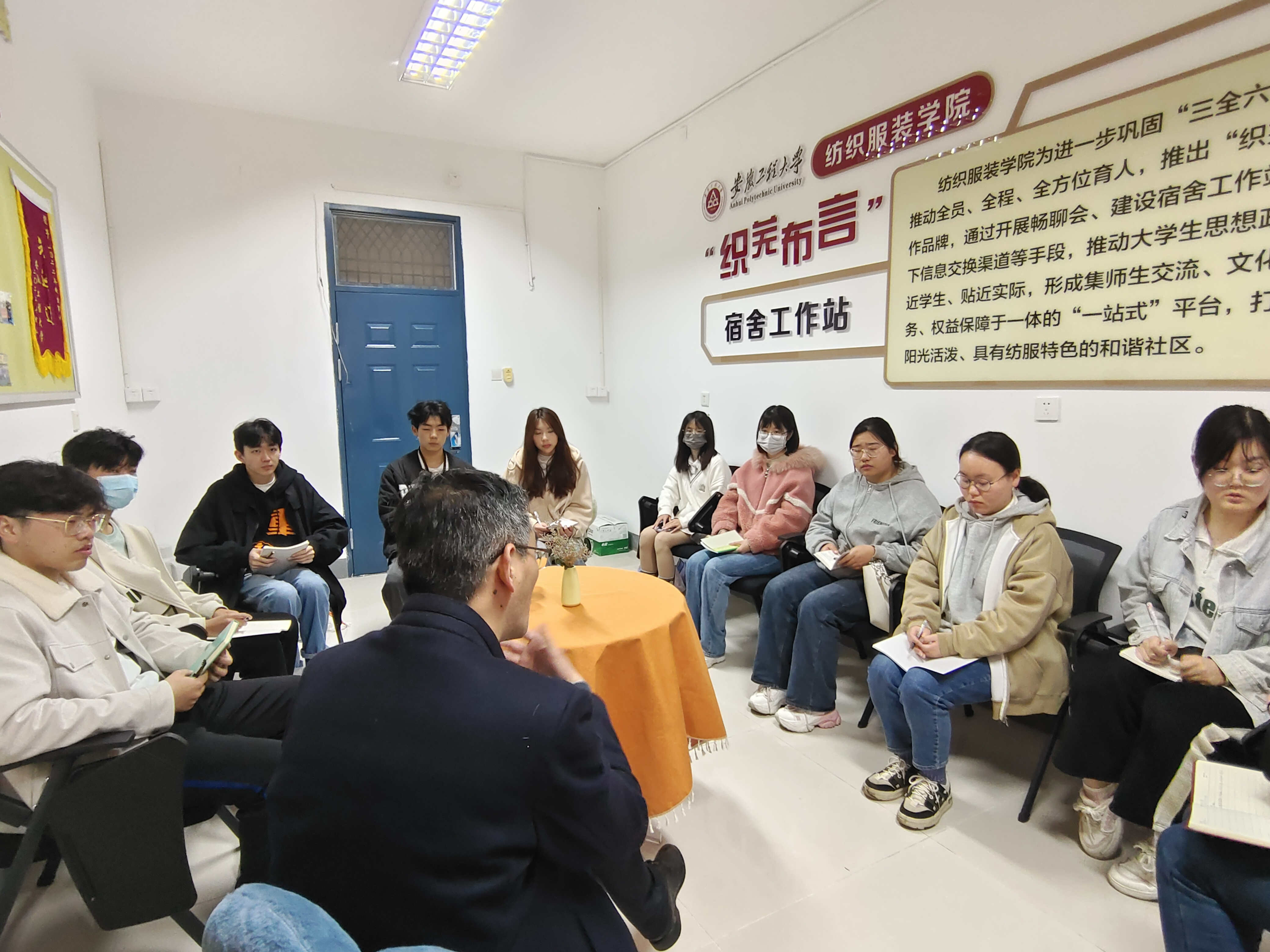 4月6日下午,纺织服装学院在“知芜不言”学生宿舍工作站举办第二期寝室长谈心会,学生处处长黄炜、纺织服装学院分管领导、辅导员和各年级寝室长代表参加了会议。