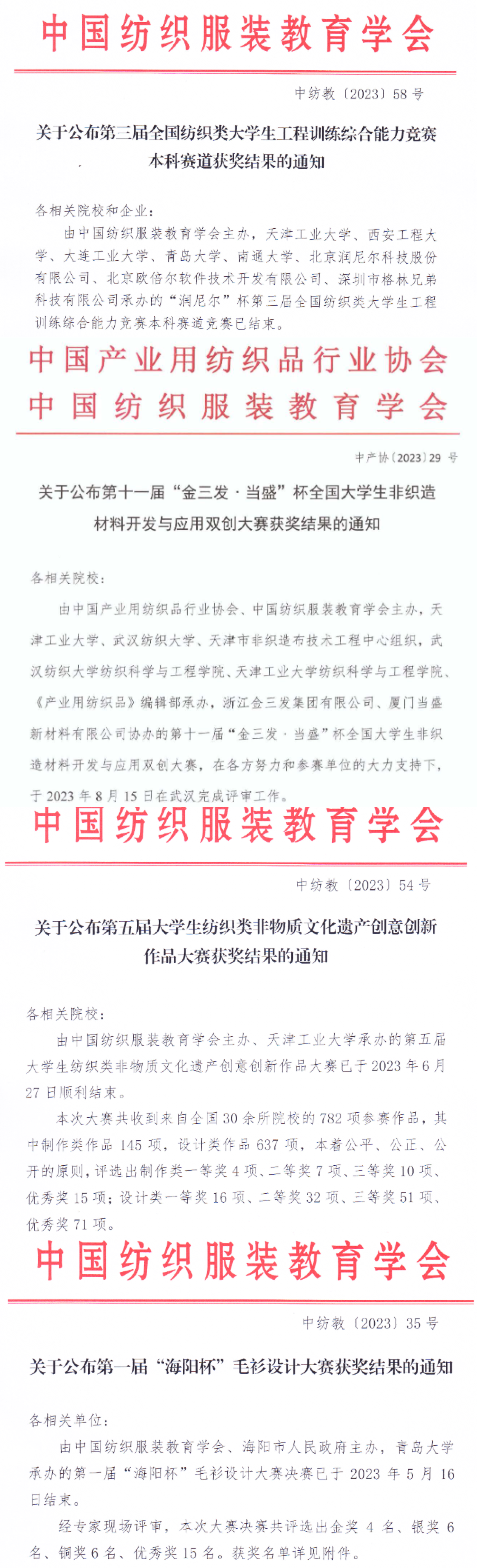 学科竞赛倡导理论联系实际、求真务实,培养学生团队意识和协同研究能力,是提升大学生创新实践能力的重要载体。纺织服装学院长期注重学生创新实践能力培养,上述成绩体现了我院师生良好的专业能力和学科素养,更是我院本科教育教学成果的重要缩影。