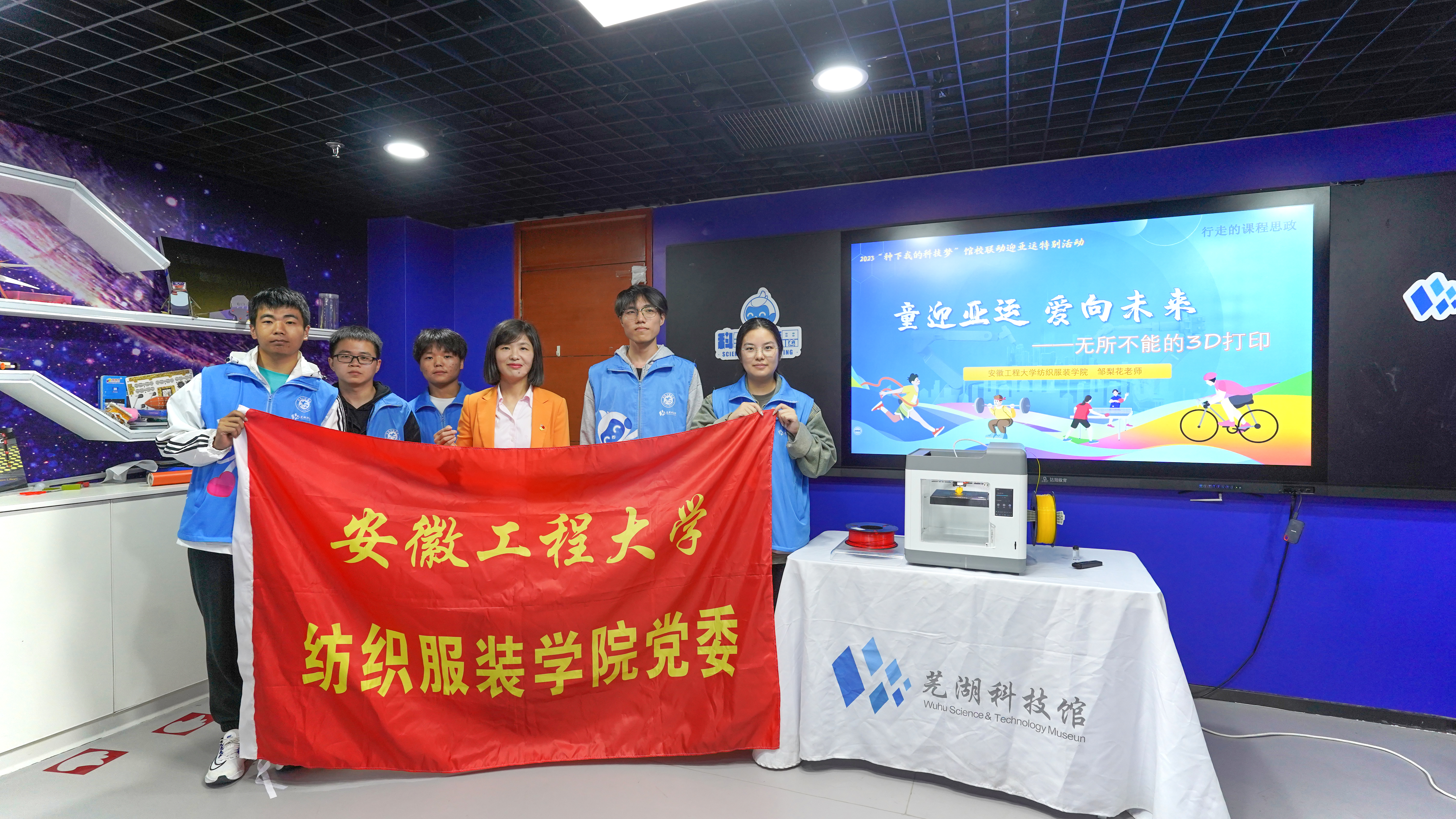 9月23日,纺织服装学院“行走的课程思政”公益团队赴芜湖科技馆开展“种下我的科技梦”馆校联动迎亚运特别活动。纺织专业教师党支部邹梨花老师带领研究生和本科生志愿者,以“童迎亚运,爱向未来——无所不能的3D打印”为主题进行科普宣讲及互动教学,让孩子们近距离体验3D打印技术。