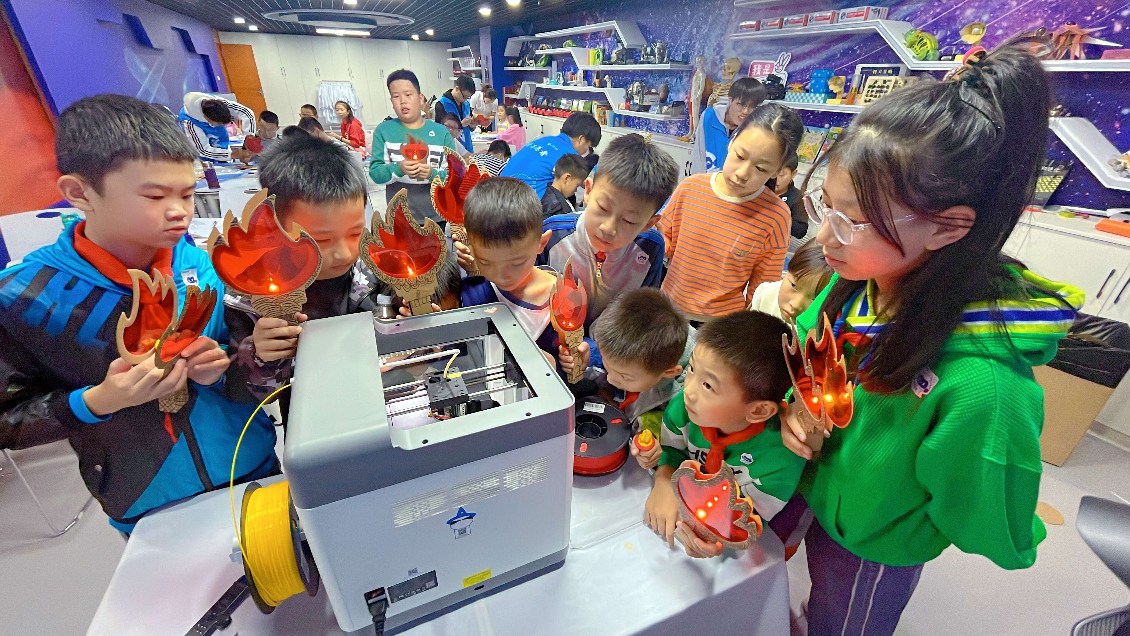 首先,邹梨花老师向孩子们讲解火炬的由来,播放亚运火炬传递相关视频资料,强调我国举办大型体育赛事的背后代表着国力的提升与国家的富强,并启发孩子们以亚运火炬为灵感,用3D打印技术实现火炬模型的制作,让他们亲自见证3D打印技术将振奋人心的亚运会火炬从纸面设计慢慢变为立体塑像的过程中,亲身感受到科技的神奇和力量。她还强调,每一支火炬都代表一代人的使命和责任,在向学生们传递知识的同时,更让他们对祖国有了更深刻的理解和感知,希望孩子们能从中汲取力量,不断追求自己的理想,为祖国进一步繁荣强大做出自己的贡献。