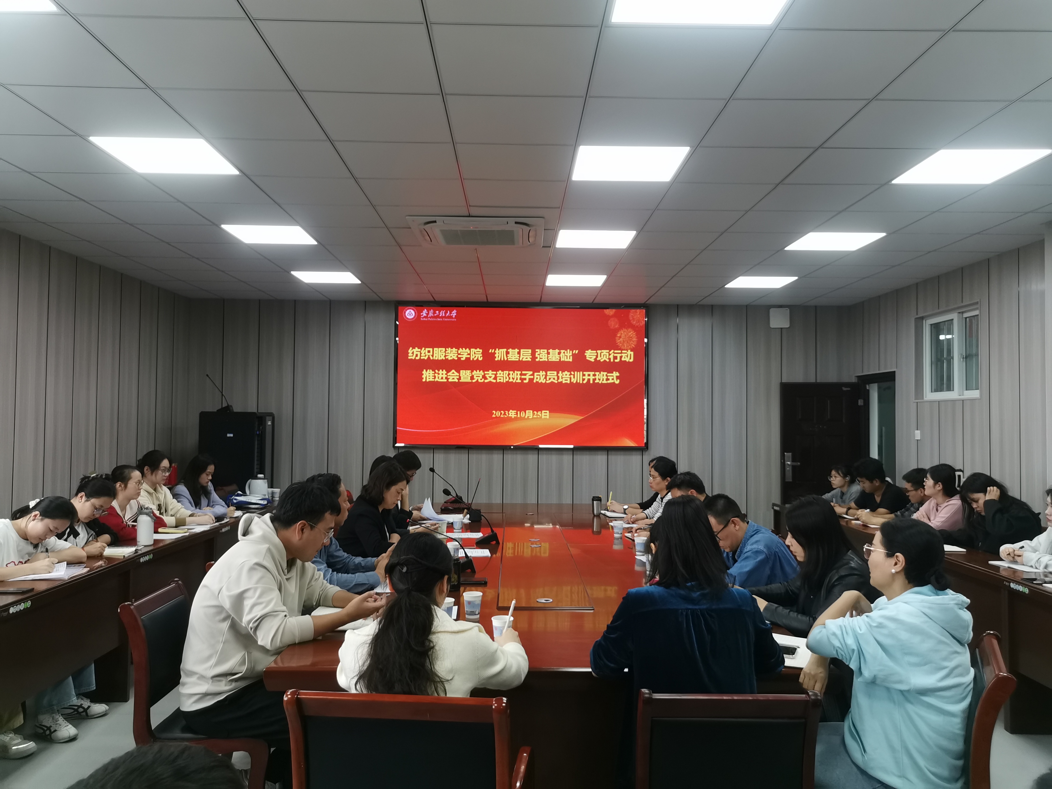 10月25日,纺织服装学院召开“抓基层强基础”专项行动推进会并举行党支部班子成员培训开班式。学院党政领导、处级干部、党支部书记、支部班子成员,师生代表等参加会议。校党委组织部副部长朱文明到会指导。会议由院党委副书记、院长李长龙主持。