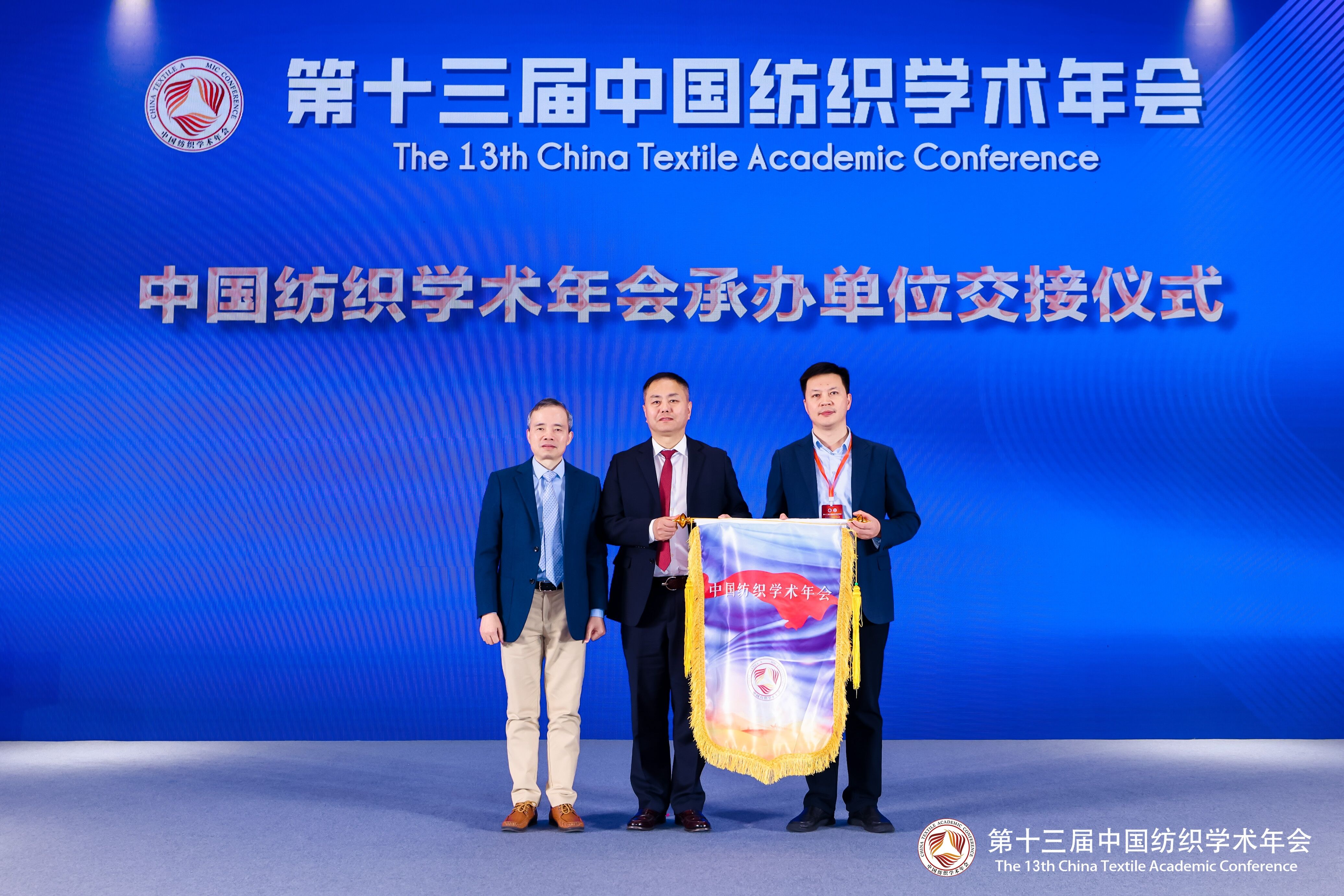 11月11至12日,第十三届中国纺织学术年会在苏州隆重召开,年会以“学产融合 成果赋能 引领发展”为主题,由中国纺织工业联合会指导,中国纺织工程学会主办,苏州大学承办,中复神鹰碳纤维股份有限公司、苏州中纺学面料产业研究院协办,得到东华大学等多家单位的大力支持。我校党委常委、副校长凤权应邀率队参加年会,并在年会承办单位交接旗仪式上,从中国纺织工程学会理事长伏广伟手中接过学会承办旗,这也标志着中国纺织学术领域最顶级的盛会进入“芜湖筹备期”,第十四届中国纺织学术年会将于2024年金秋时节在芜湖召开。