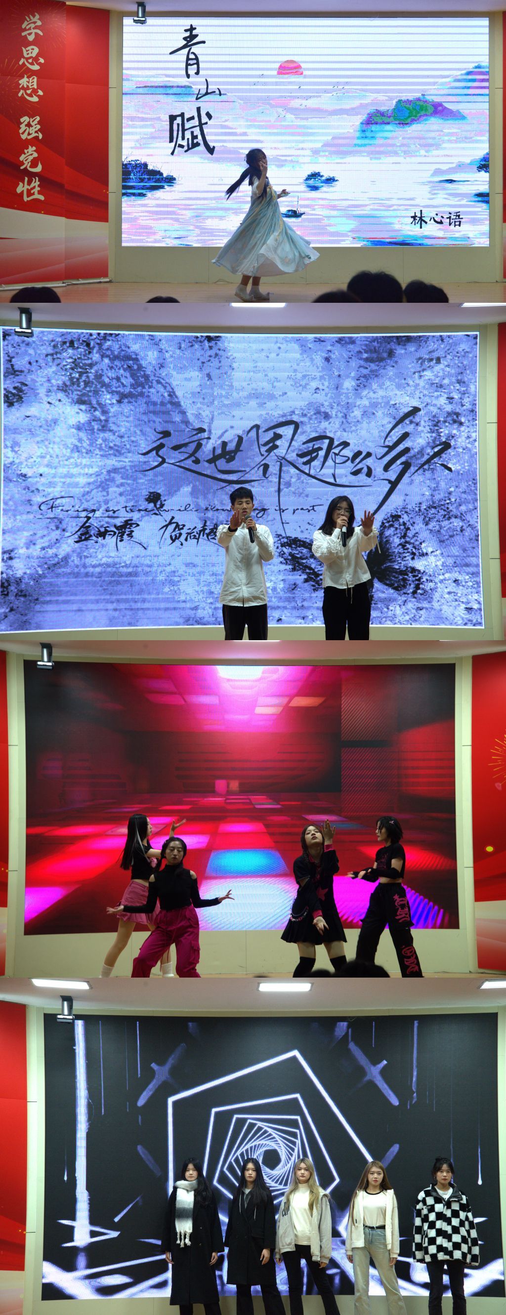 经过现场精彩演绎,最终走秀《Liberty Walk》、小品《反诈银行》荣获一等奖,《纺服电台》等三部作品等荣获二等奖,《青山赋》等五部作品荣获三等奖。本次比赛共有十个节目进入到决赛环节,包括唱歌、跳舞、小品、相声、走秀等多种表演形式。其中,小品《反诈银行》聚焦防范电信诈骗,以幽默诙谐的剧情给同学们敲响警钟,督促大家提高防诈意识;特色走秀《Liberty Walk》体现专业特色,同学们身着华服,精彩亮相,用飒爽的身姿走出纺服学院学生的风采。