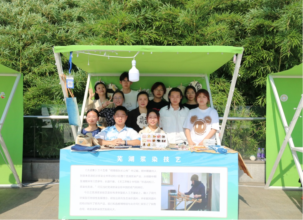 “本草染织”青年志愿者服务团队自2018年成立以来,在校团委和纺织服装学院的关怀指导下,以培养工匠精神,促进芜湖“浆染”非遗文化传承为初心,通过开设非遗劳动课程,促进大学生“勤”起来;打造活态非遗工坊,面向困难群体,开展帮扶培训,助力乡村振兴;推动传统技艺创新发展,设计艺术“潮玩文创”、以创意焕彩非遗文化,推动青年与非遗的“双向奔赴”,通过五年多努力,让芜湖“浆染”技艺在传承中焕发出新的生机与活力。