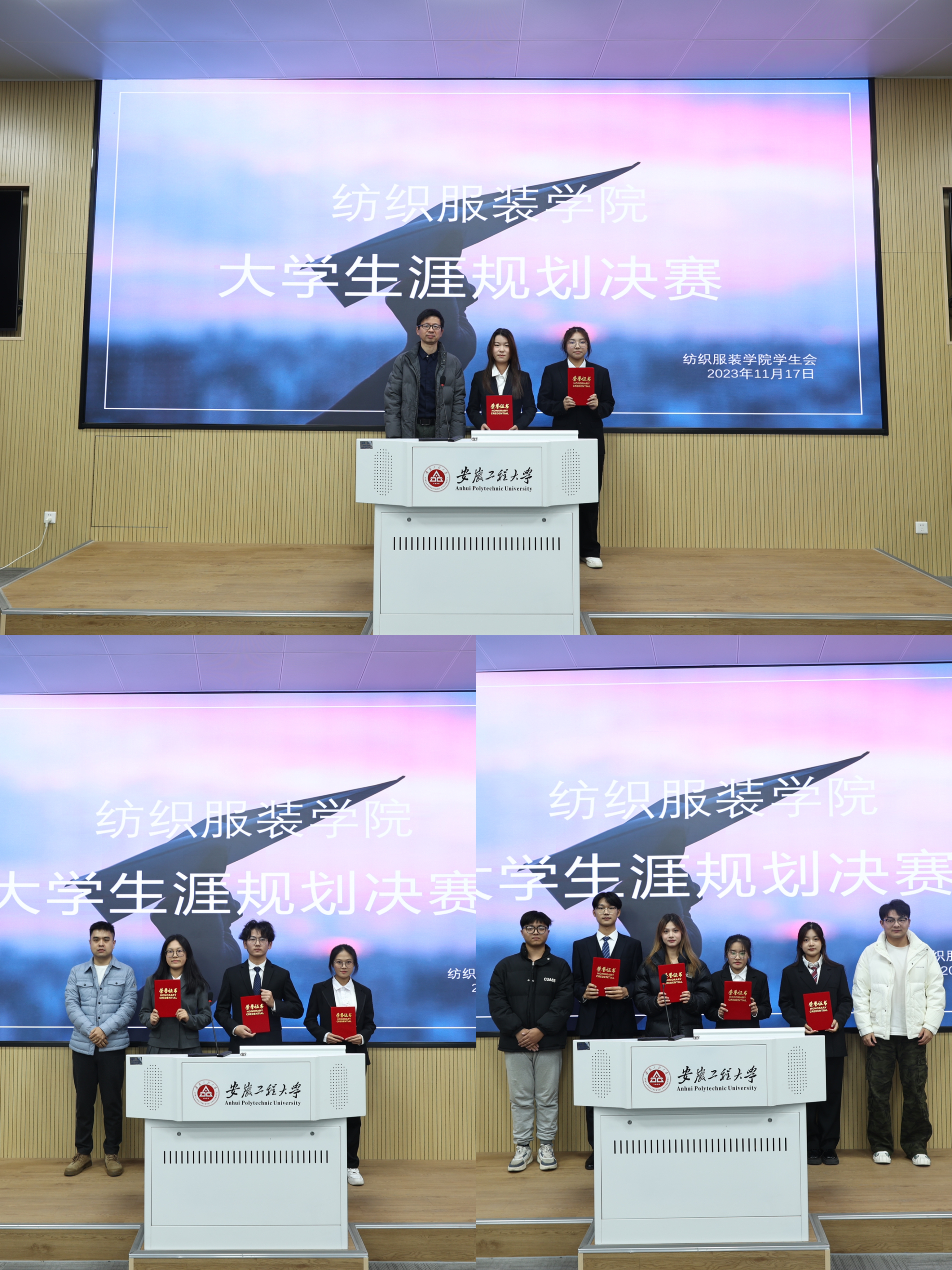 11月17日晚7点,纺织服装学院第十五届大学生规划决赛在5教217教室举行。学院党委副书记梁雪松、团委书记陈倩、23级新生辅导员张旭和新生代表观看比赛。经过激烈的竞争,非织造231班陈进蕊和纺织231班张爱芝荣获一等奖,纺织231班倪琦云、非织造231班谢艳鸿和刘明桢荣获二等奖,纺织232班刘艺、服工231班杨笑荣、服表231班徐心妍、纺织232班骆昕怡和服表231班王申龙荣获三等奖。
