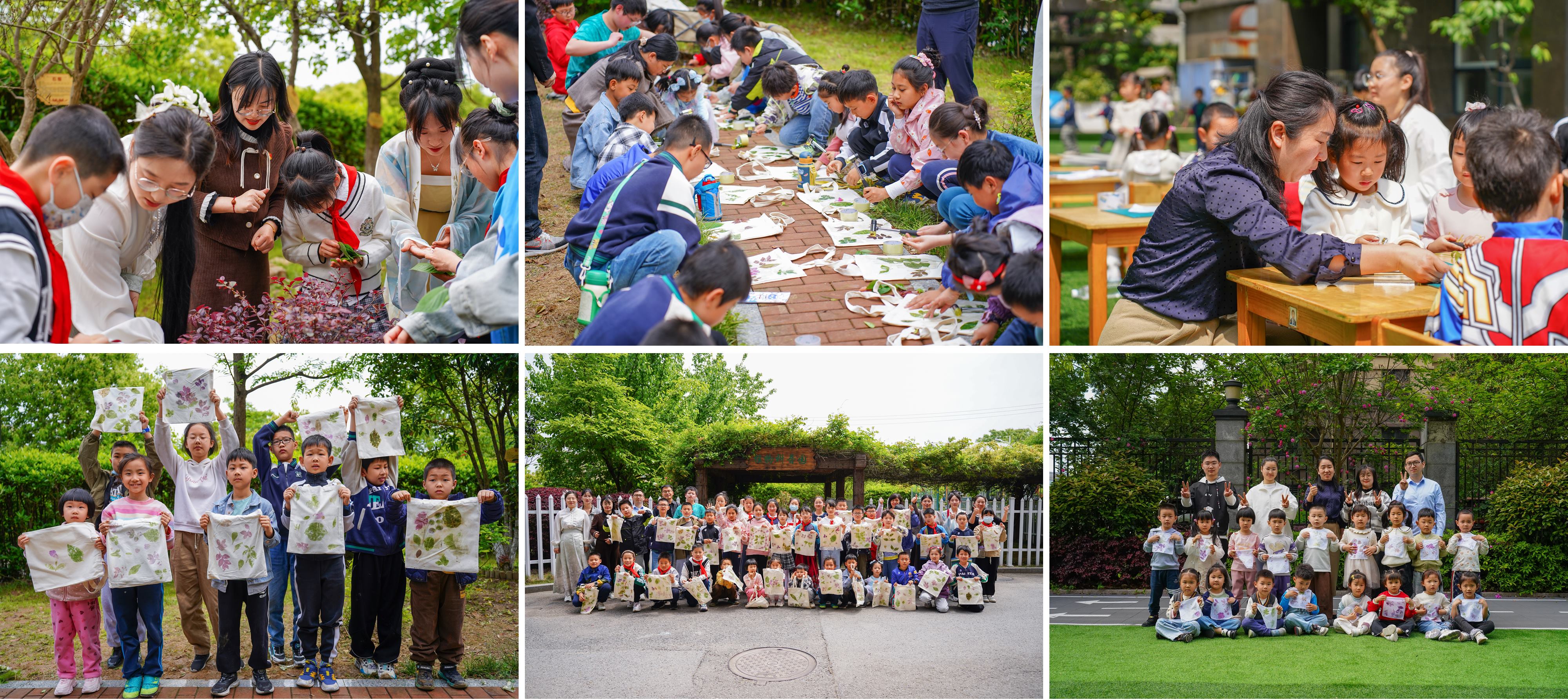 随后,老师带领孩子们到科技馆植物园及幼儿园操场进行“拓染话传承 自然润童心”的锤草印花实践体验环节。让孩子们动手进行纺织品的敲拓染和印花,感受植物染料与合成染料的颜色碰撞,在生机盎然的春天里让孩子们自己绘制色彩斑斓的纺织品,开拓孩子们的视野,提高他们的观察和动手实践能力,增强孩子们对传统文化技艺的传承与创新。
