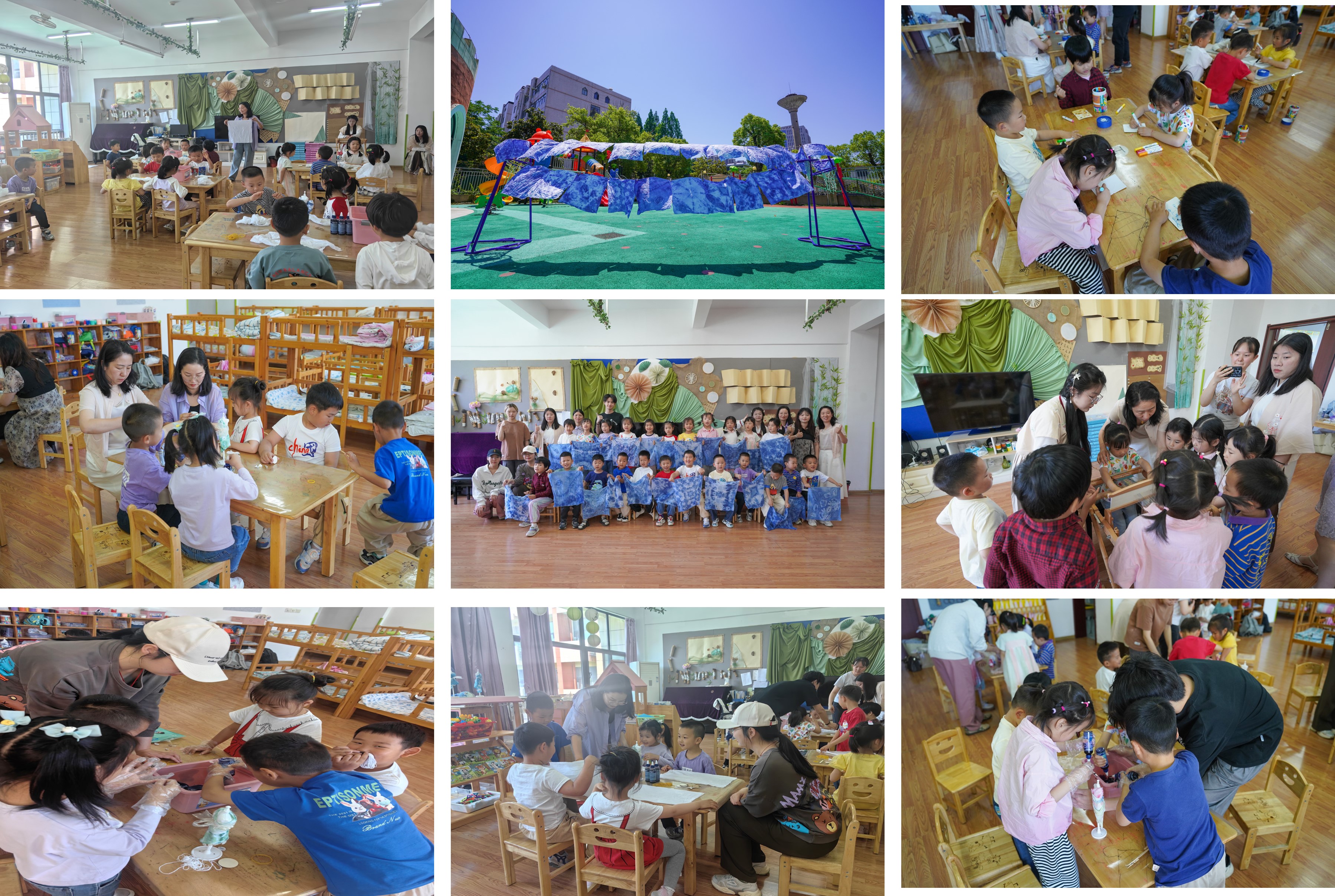 为积极响应第八个全国科技工作者日和全国科技活动周的活动要求,5月29日,纺织服装学院“行走的课程思政”公益团队来到RayBetApp官网下载 附属幼儿园,开展“童趣非遗,共筑未来——守护民族文化的瑰宝”传统文化体验主题活动。党员教师李敏、孙妍妍、裘秀群带领学生志愿者,向小朋友们讲解手工扎染及织造技艺,让孩子们在沉浸式体验中感受优秀传统文化的魅力。