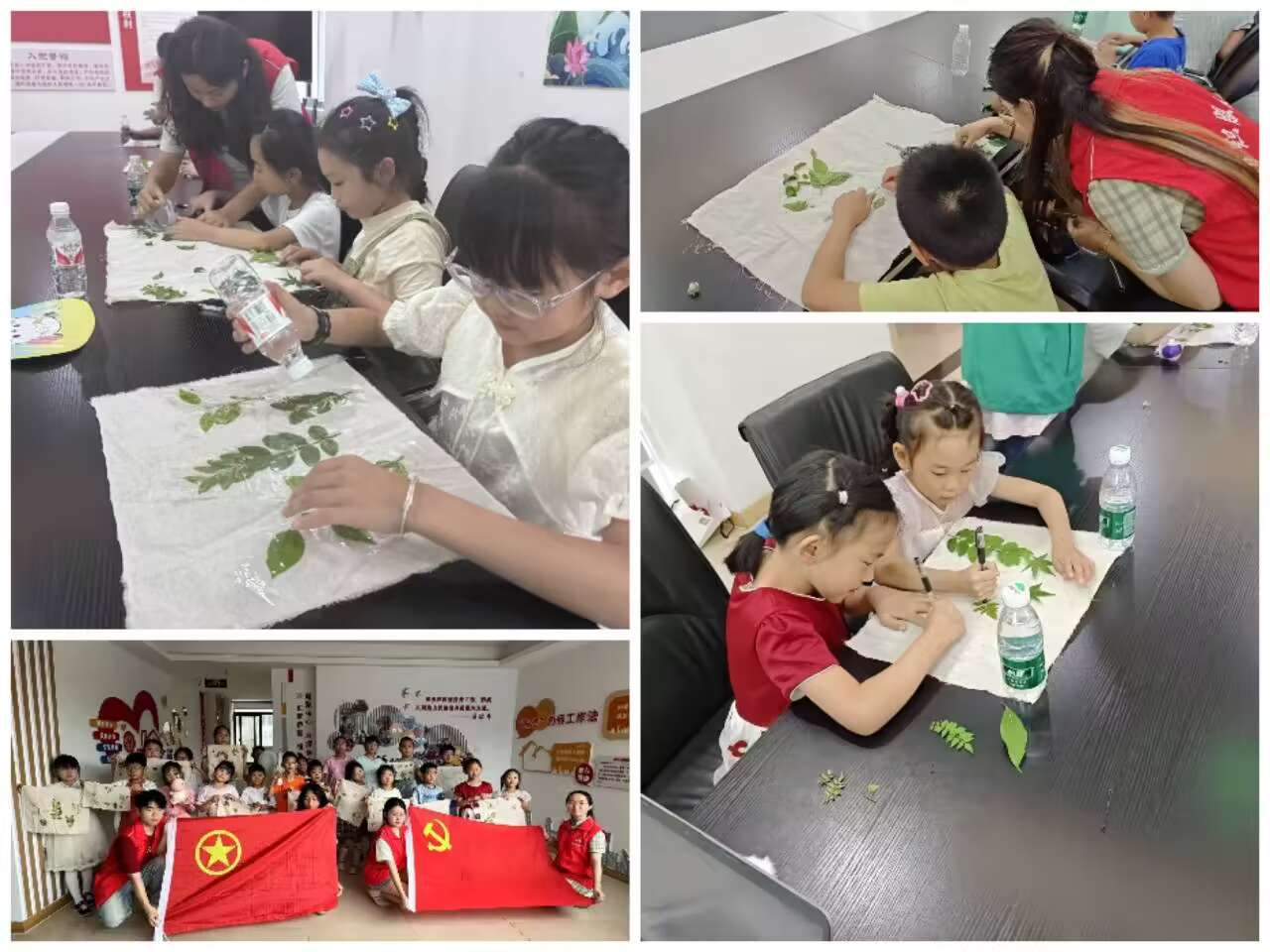 在石城社区,志愿者带领青少年们体验植物染的乐趣。青少年们在志愿者的指导下,利用身边采集的植物物料,亲手制作出了独一无二的植物染作品,引导他们学习传统技艺,热爱大自然。