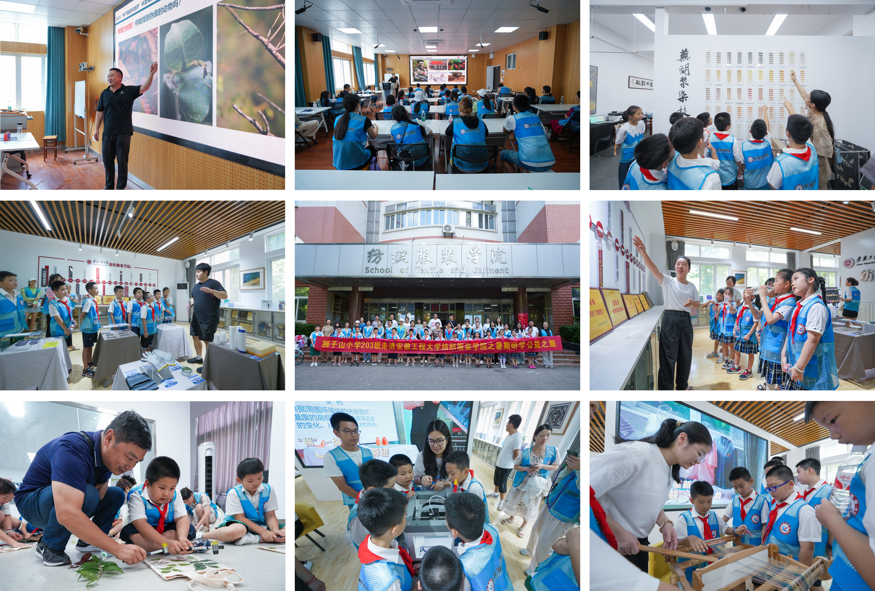 为弘扬青少年爱国主义精神,充分发挥高校的阵地资源优势,搭建“立体化”专业小课堂与社会大课堂相结合的科普研学平台。7月25日,纺织服装学院“行走的课程思政”公益团队开展“科普小课堂,种下大梦想”科普研学游活动,芜湖市狮子山小学校长陈明老师、203班班主任张洪老师和30余名学生及家长来校参加此次活动。