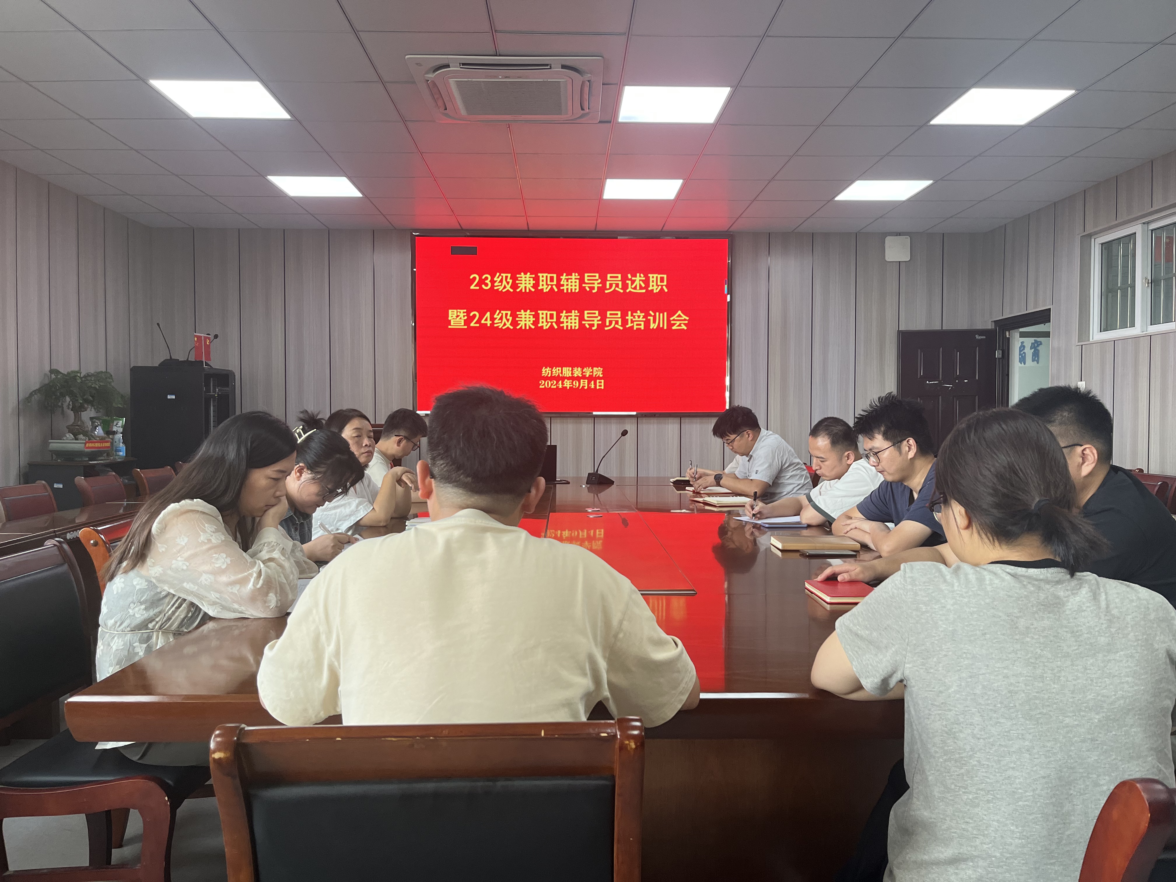 9月4日,纺织服装学院在学院会议室举行23级兼职辅导员述职评议会,学院党委书记徐珍珍、党委副书记梁雪松、学院团委负责人和专职辅导员,以及全体23级、24级兼职辅导员参加会议,会议由梁雪松主持。