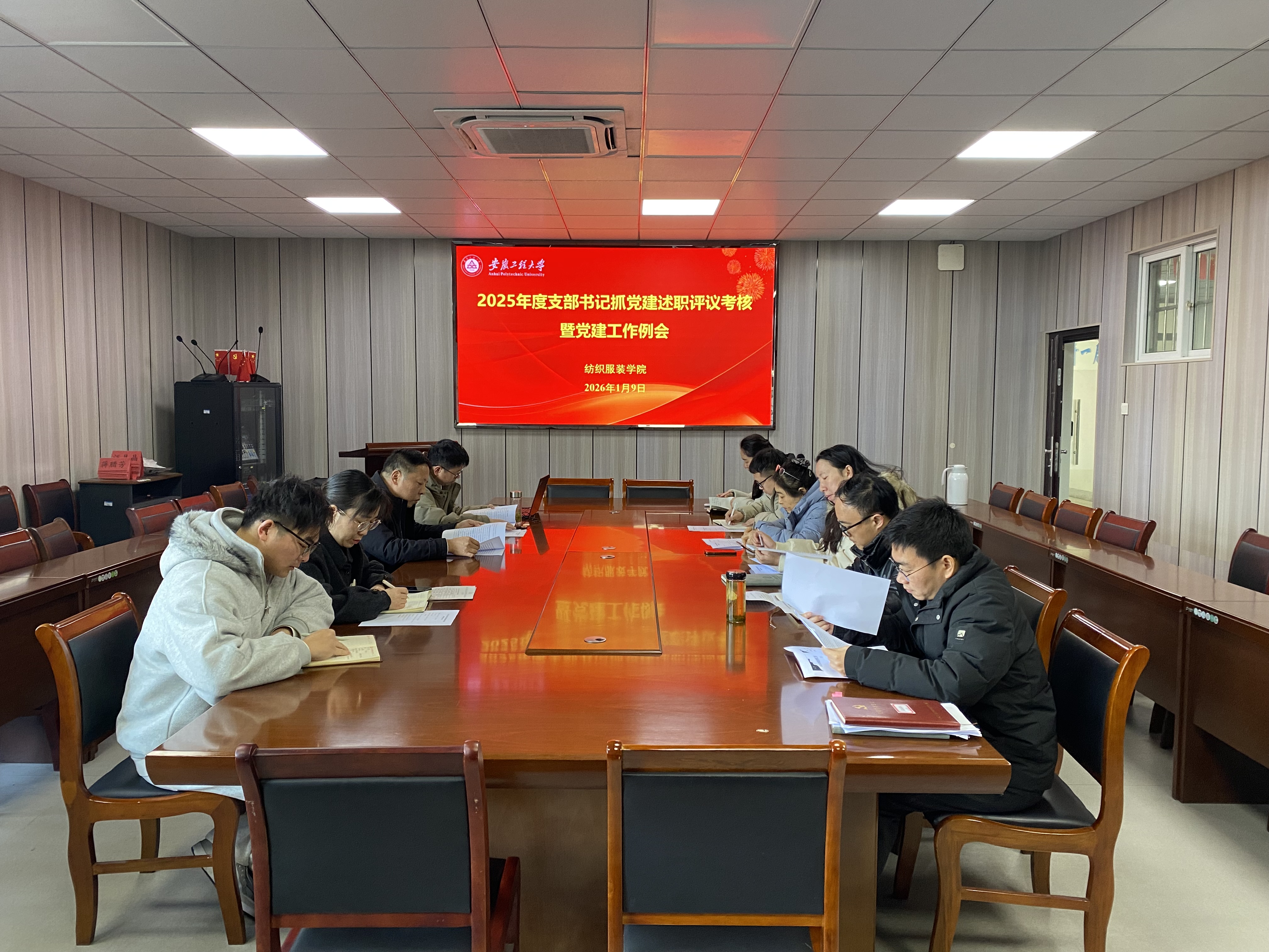 1月9日,纺织服装学院党委召开2025年度党支部书记述职评议考核暨党建工作例会,学院党委班子成员、各党支部书记、师生党员代表参加会议并进行现场评议。会议由学院党委书记李长龙主持。