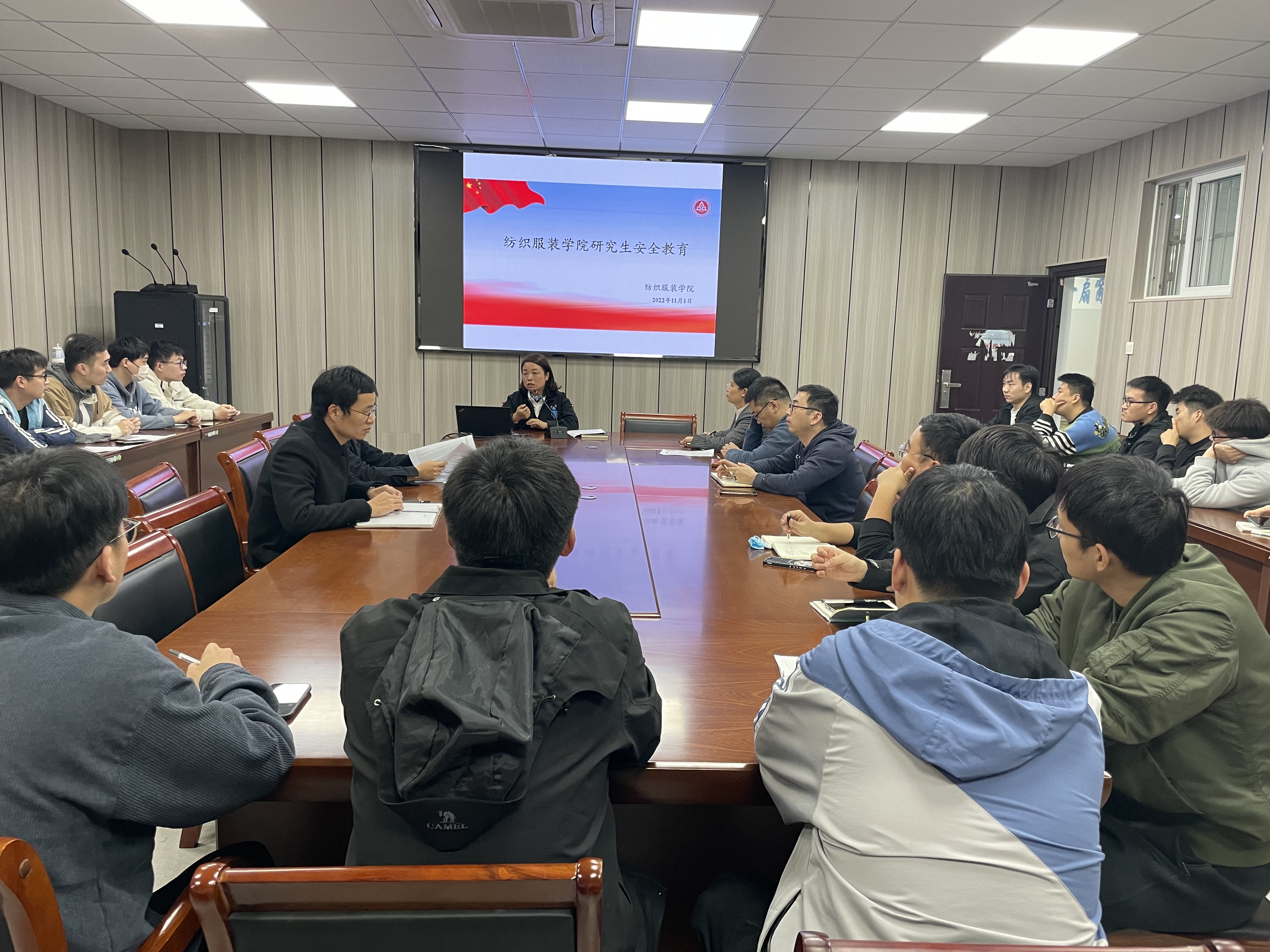 为进一步提高学生的安全意识和自防自救能力,维护师生生命安全,创造平安校园环境。11月1日下午,纺织服装学院在D413开展研究生安全主题教育暨研究生党支部主题党日活动,就校园交通安全、实验室安全等涉及学生生命、财产安全问题进行了主题教育和学生讨论。本次活动由学院党委副书记(主持工作)徐珍珍主持,研究生秘书、研究生辅导员、班主任和全体研究生参加。