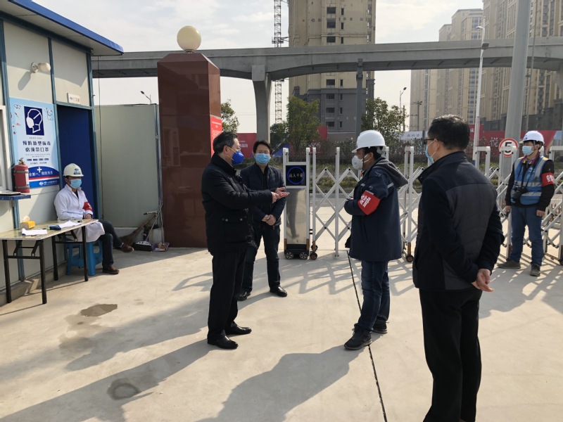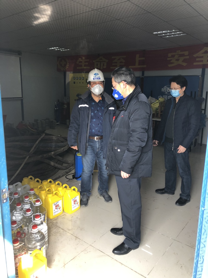 检查中,郭兴众详细询问两个标段在复工人员信息摸排、上岗人员进出检测、消毒防护物资采购、食宿安全管理、隔离间区设立、健康档案建立和突发情况应对等方面所做的各项准备工作和应急处置方案,实地走访了物资储备室、食堂就餐区和人员居住区,听取了一期二标段和二期项目负责人相关工作汇报。