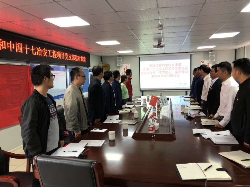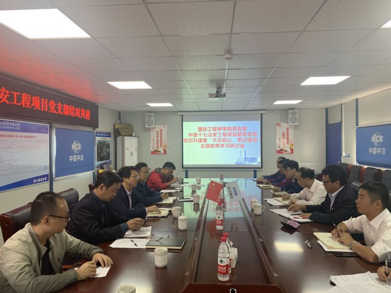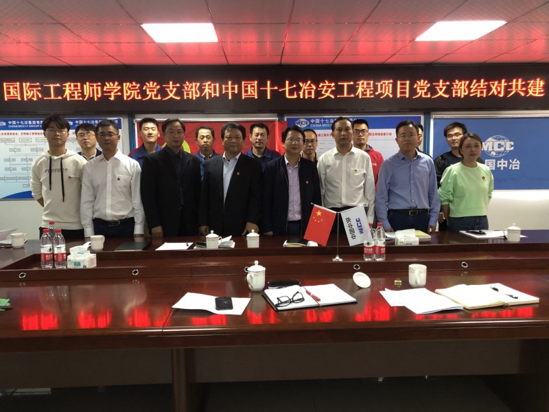 2019年10月18日上午,国际工程师学院党支部与中国十七冶安工程项目部党支部开展结对共建暨“不忘初心、牢记使命”主题教育学习活动。国际工程师学院和中国十七冶安工程项目部党支部全体党员参加支部共建和专题学习。会议由国际工程师学院党支部书记李敬华主持。