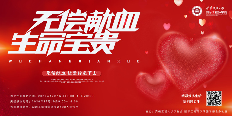 1.招募32名国际工程师学院校区的志愿者,上午16名、下午16名。工作职责为协助做好19日各项献血活动。