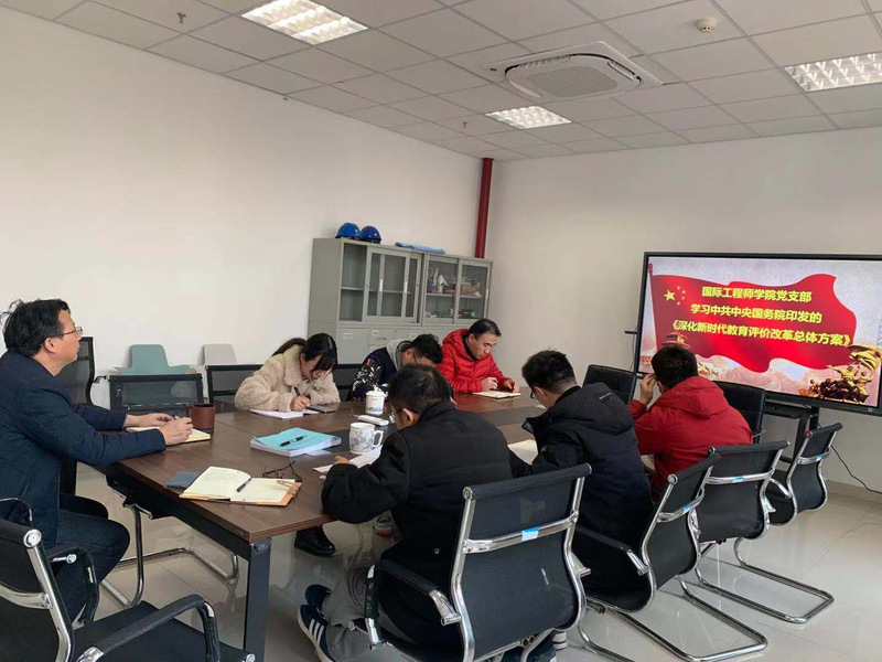 此次党日活动分为三个环节。首先,组织委员兼纪检委员白大海带领大家学习了习近平“推进全面依法治国,发挥法治在国家治理体系和治理能力现代化中的积极作用”的讲话。随后,党支部副书记王中江深度解读了中共中央国务院印发的《深化新时代教育评价改革总体方案》,期间国际工程师学院校区管委会常务副主任魏长顺结合自身学习经验和其他会议精神,提出了自己对此教育评价改革方案的深刻理解,赢得了同志们的一致认可。