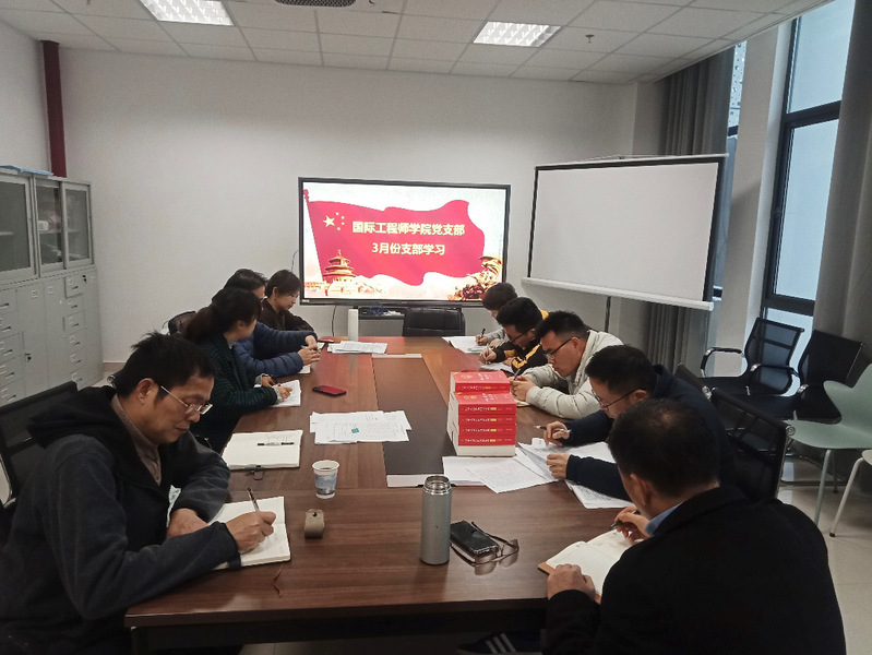会议最后,与会全体党员现场签订了“践行绿色发展理念,建设节约型、生态型国际工程师学院”承诺书。