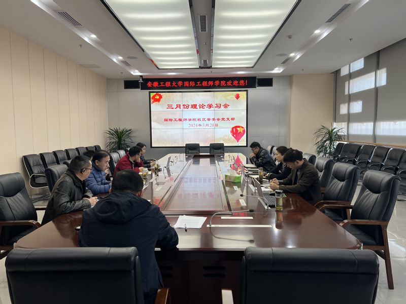 320日,国际工程师学院校区管委会党支部在图文信息中心七楼无701无纸化会议室召开三月份政治理论学习会,会议由支部书记陈阳主持。