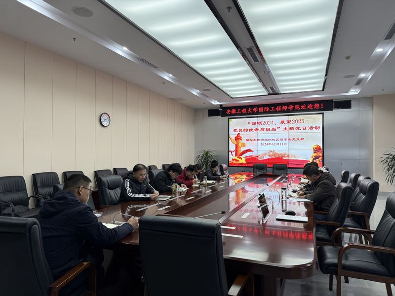 12月11日,国际工程师学院校区管委会党支部在图文信息中心七楼701无纸化会议室开展“回顾2024、展望2025:党员的使命与担当”主题党日暨专题党课活动,活动由支部书记陈阳主持。