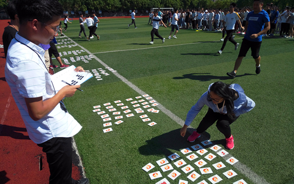 素质拓展活动分为“机缘破冰”、“名字叠罗汉”、“团队建设”、“大海捞针”、“动力绳圈”等单元和环节进行。在体院专业教师的组织下,各小组由专业教练进行指导,在选出队长、队名后分别开展活动。