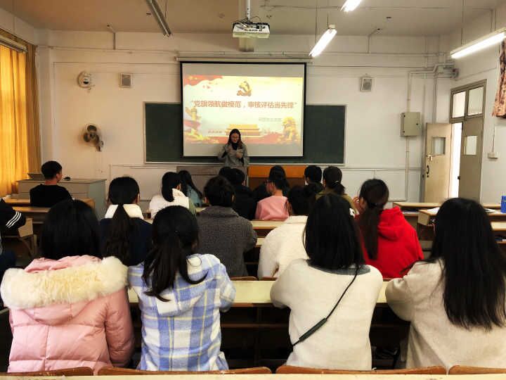 12月份学校将迎来本科教学工作审核评估,为推动学校本科教学工作审核评估的顺利进行,进一步发挥基层党组织的战斗堡垒作用和党员先锋模范作用,11月25日上午,管理工程学院经营学生支部在2J203开展了“党旗领航做模范 审核评估当先锋”主题党日活动。经营支部的同学们参加了活动。