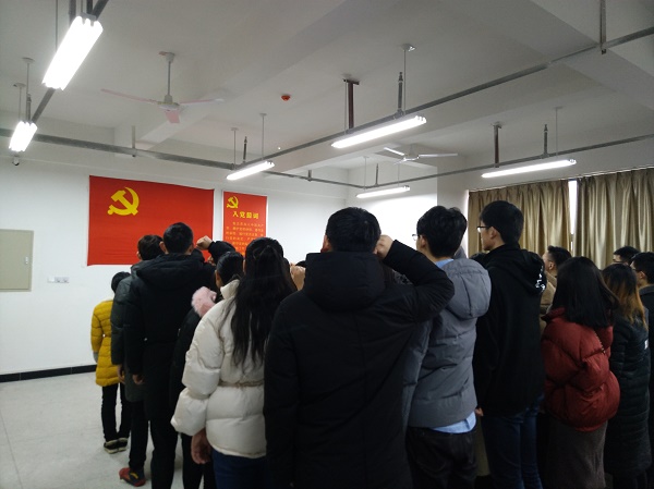 12月26日上午,管理工程学院组织本学期新发展的48名预备党员在学院党员活动室开展入党宣誓。组织员、各学生支部书记、团委副书记参加了活动,活动由学院党委副书记程繁主持。