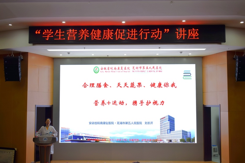 在“5.20”中国学生营养日来临之际,校医院、管理工程学院邀请安徽省皖南康复医院、芜湖市第五人民医院防保科科长刘素芹主任医师,于2019年5月15日在C座7楼报告厅举办学生营养健康知识宣讲活动,为大学生们进行关于合理膳食,增强体魄方面的“营养+运动”健康饮食知识讲座。