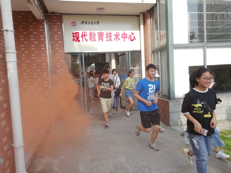 活动正式开始之前,保卫处张翀老师在5教310教室对演练过程进行了详细介绍,安排相关人员演示逃生技能,确保同学们掌握正确的逃生方法。“现在地震来袭,紧急避震”,随着一声长哨响起,防震减灾演练活动正式开始,警报响起:同学们迅速就近躲避在课桌下、承重墙墙根、墙角等处。30秒后,保卫处相关人员在楼梯口燃起烟雾弹,烟雾瞬间就充满了教学楼楼道。第二次警报响起:“现在地震暂停,发现火情,立即疏散”,同学们立即双手抱头,按照之前学习的逃生技能,用衣物捂住鼻口,快速、有序地撤离到安全地带。随后,在5教门前,活动负责人清点人员名单,确保每位学生安全撤离教室,并在演练结束后发放防震减灾知识宣传材料。