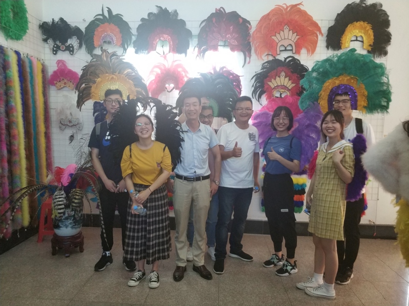 最后一站是羽毛工艺品制造厂—六安市奥安康工贸有限公司,这是一家产品主要销往国外的羽毛工艺品制造公司。从固镇镇的本地养殖基地、屠宰场和农户手里收购鹅毛,把鹅毛的宽羽经过拉直、裁剪,制作成羽毛球、灯笼、羽毛扇、羽毛翅膀和羽毛面具等等。该公司的羽毛球主要销往香港,灯笼和其他产品主要销往国外,该公司的羽毛球大多是用来打国家级的羽毛球赛事,对羽毛球的重量和质量都有非常严格的质量把控,每一个羽毛球在包装前都要经过风洞的测试,确保质量都达到合格的标准。