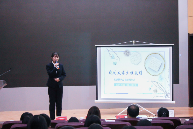 经过初赛的选拔,共有10名选手进入决赛。选手们借助PPT展示了他们对未来四年大学生活的规划,结合自我认知、自我定位、外部环境、未来期待等方面对自己的大学生涯进行规划,主题鲜明,思路清晰,充分展现了当代学子朝气蓬勃的精神面貌。各位选手的策划案在对自我与外在条件探索之余,还给我们提供了更多的视角去看待大学生活,郝海娟同学用“魂如庄子,心如始皇”表达自己对目标的坚定追求,万小雅同学用“选择是一次次塑造自我的过程”,告诫同学们认清自我,做出无悔于自己的选择。