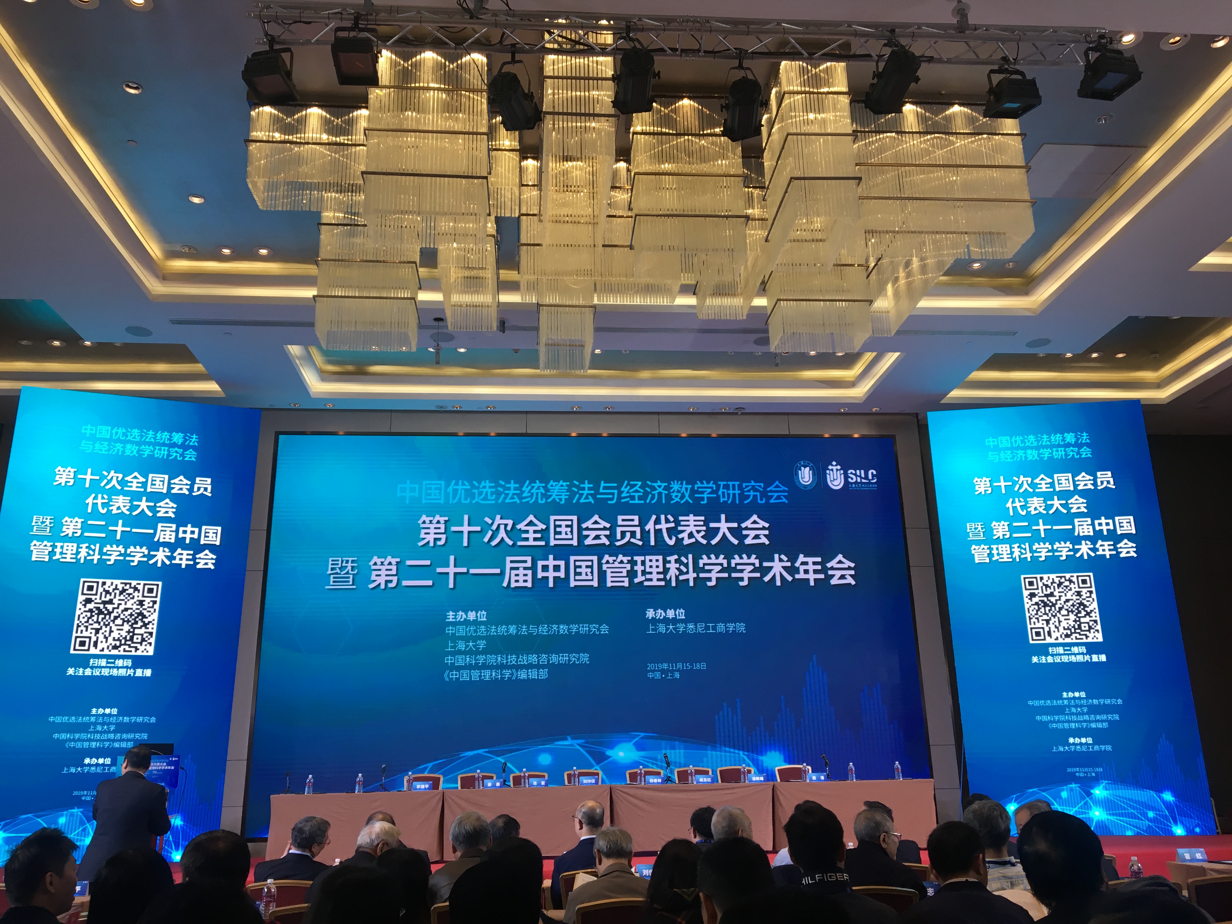 11月15-17日,第二十一届中国管理科学学术年会在上海大学顺利举行。大会由中国优选法统筹法与经济数学研究会、上海大学、中国科学院科技战略咨询研究院和《中国管理科学》编辑部联合主办,由上海大学悉尼工商学院承办。上海大学党委书记成旦红教授、上海大学副校长聂清教授、中国工程院杨善林院士、国家自然科学基金委管理科学部副主任刘作仪教授、中国优选法统筹法与经济数学研究会理事长池宏研究员、中国科学院科技战略咨询研究院院长潘教峰研究员、《中国管理科学》主编蔡晨教授等领导、嘉宾出席开幕式,来自全国200余所高校和科研院所的1200余名代表参加了本届年会。我院龚本刚、程晋石、刘志等教师和部分研究生参加了本次会议。